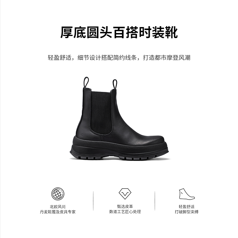 ECCO爱步靴子女 新款秋冬轻便厚底切尔西靴短靴 踪迹30 220753