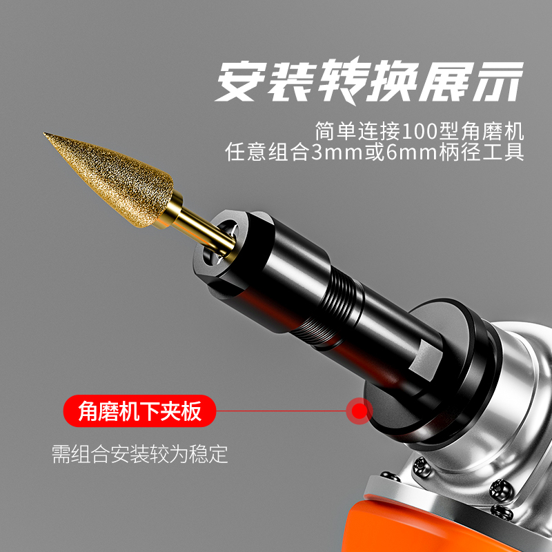 100型角磨机改装变电磨转换头直磨机3mm/6mm夹头螺帽磨光机转电磨