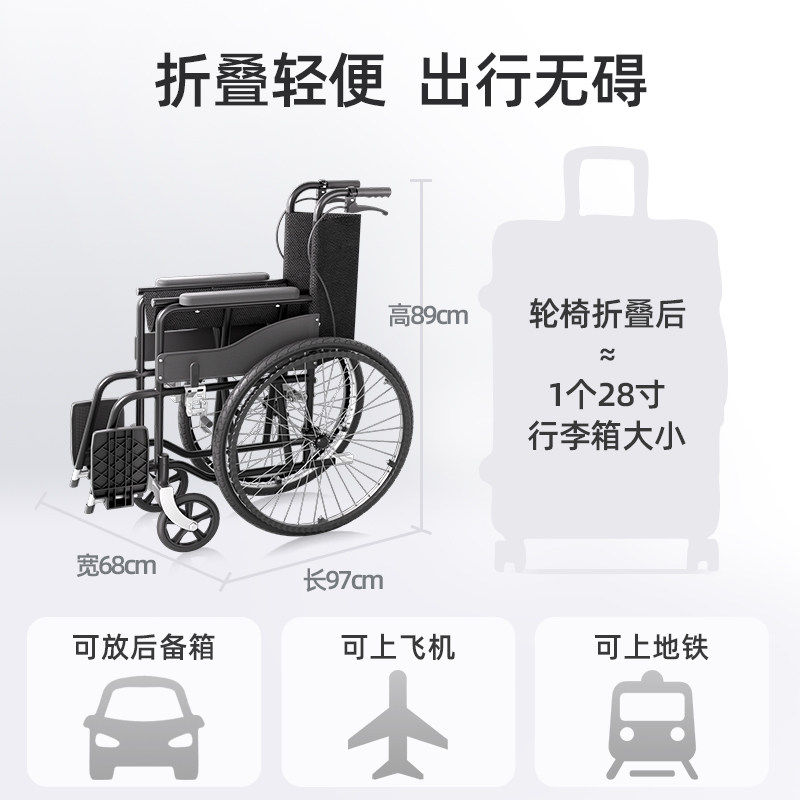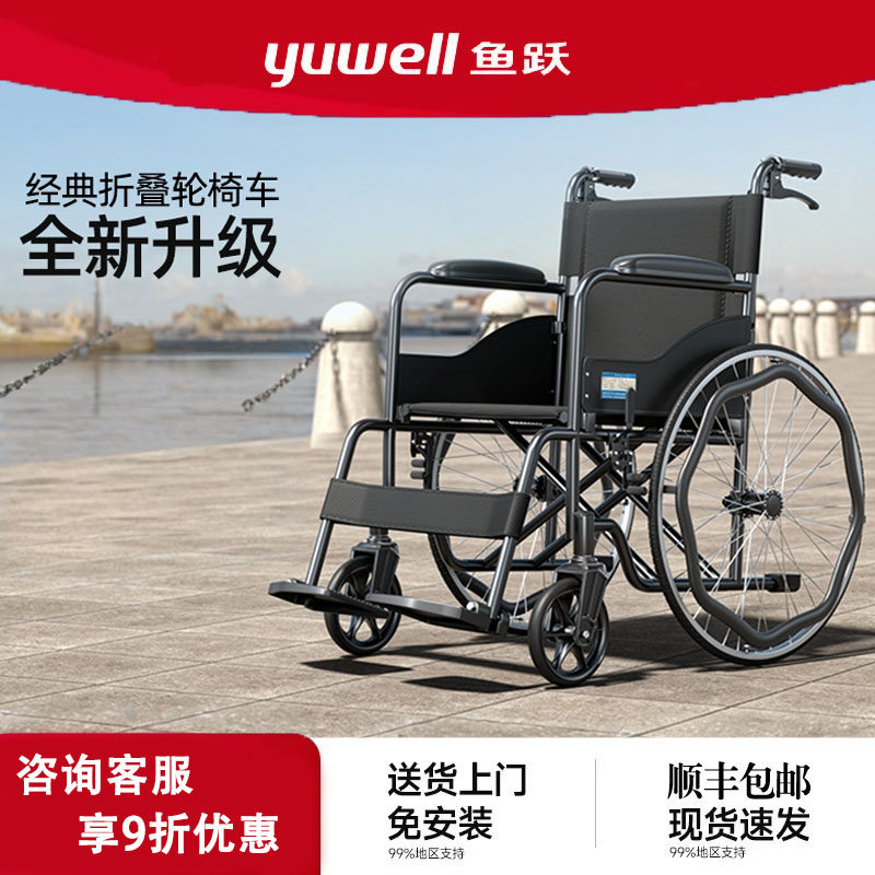 鱼跃手动轮椅折叠轻便多功能年轻人骨折代步车瘫痪老人专用推车