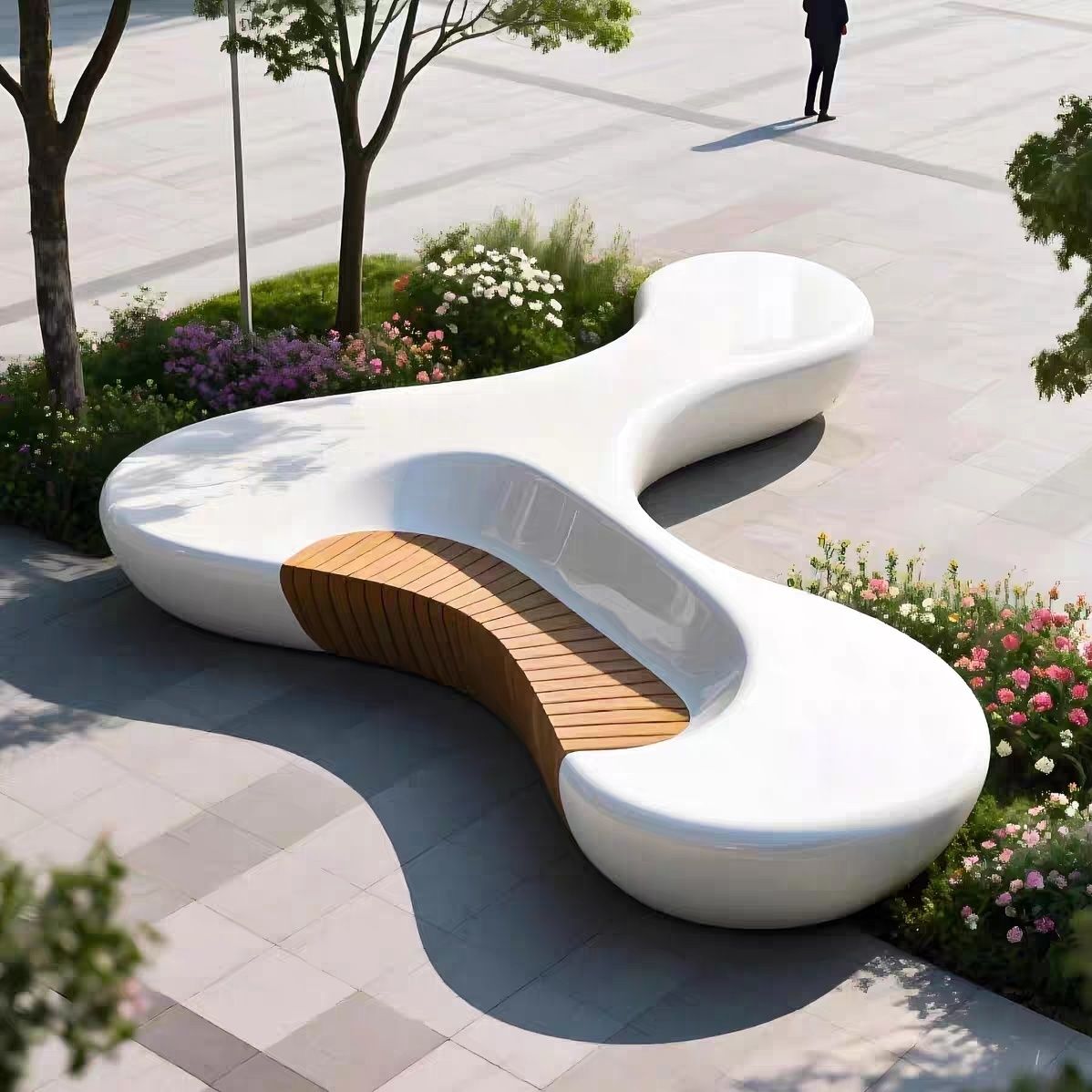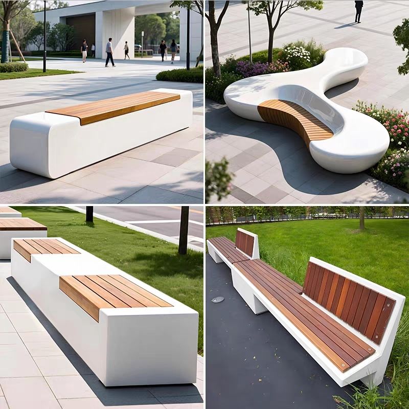 玻璃钢防腐木坐凳创意长条坐椅公共休息区等候椅商业办公家具条凳