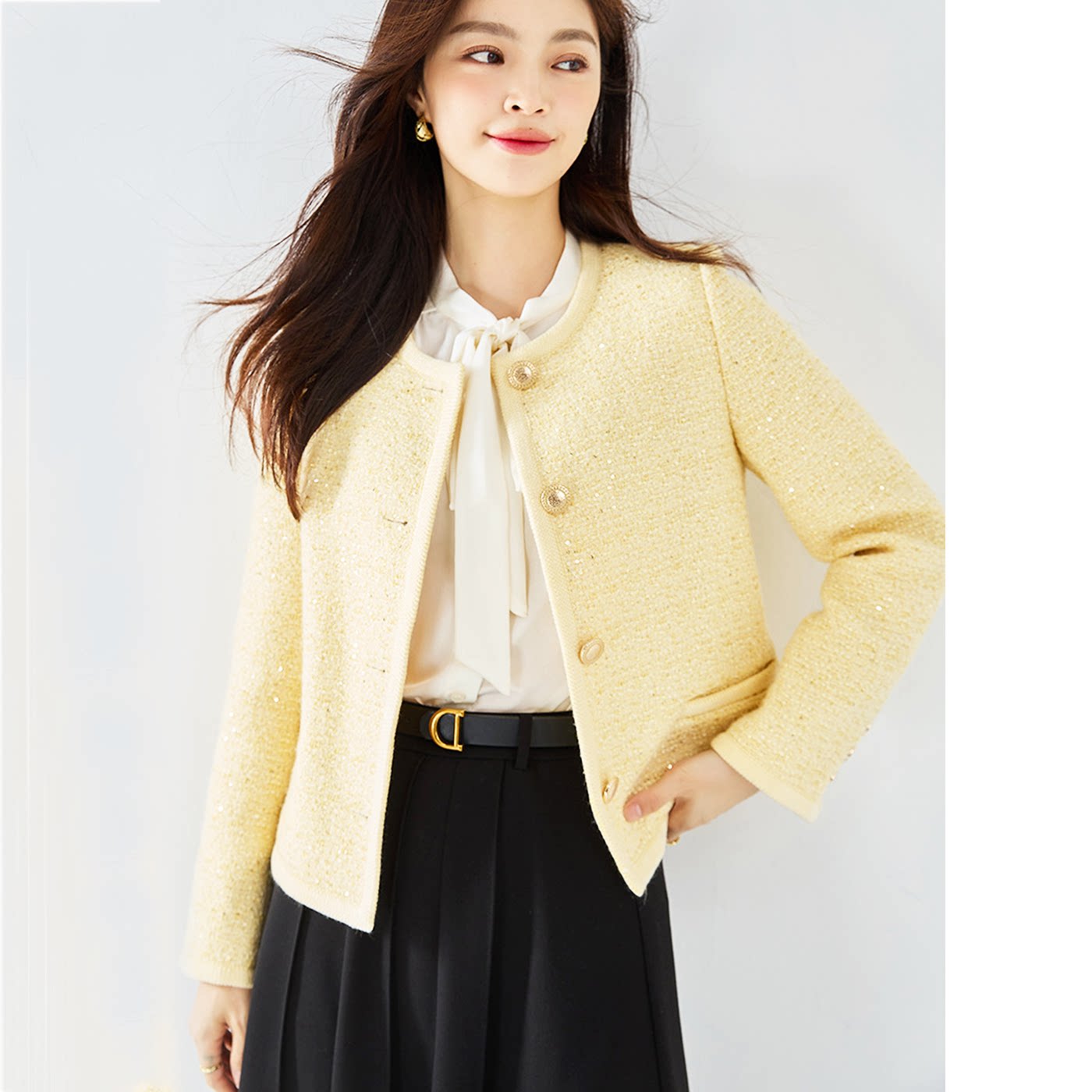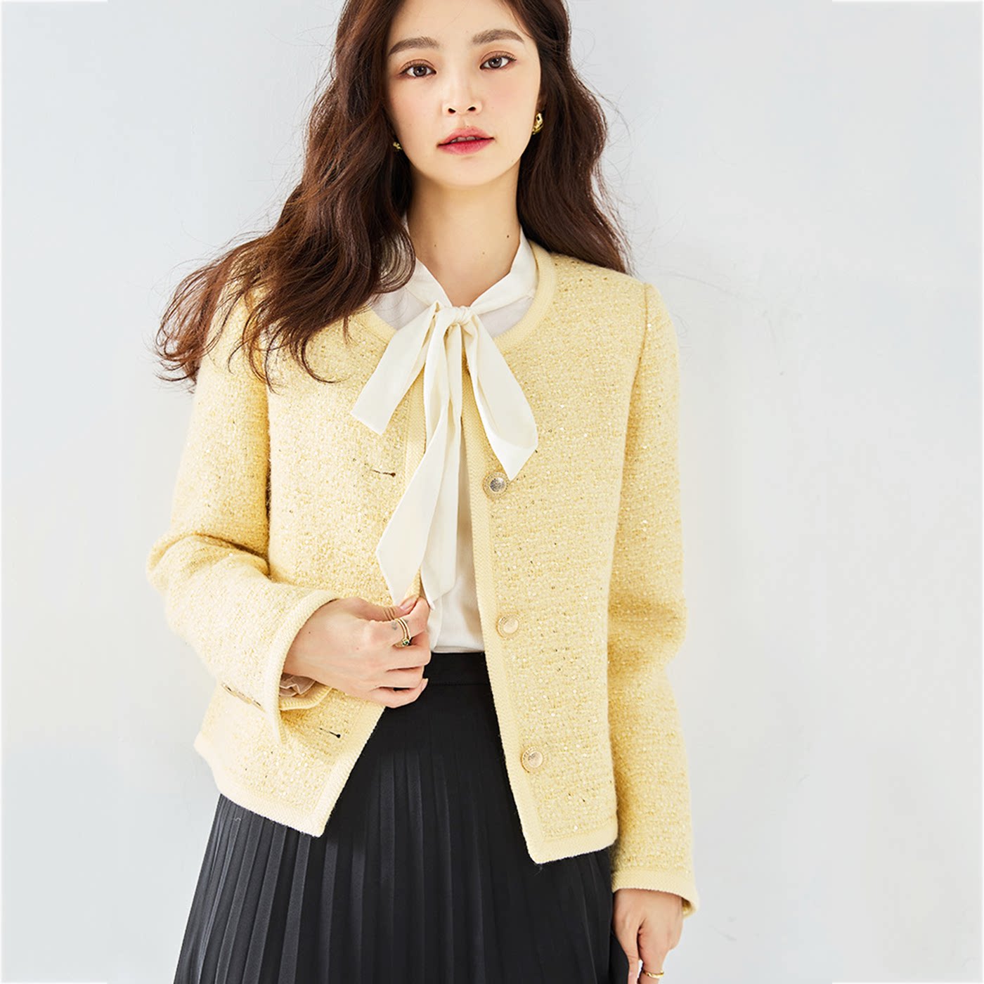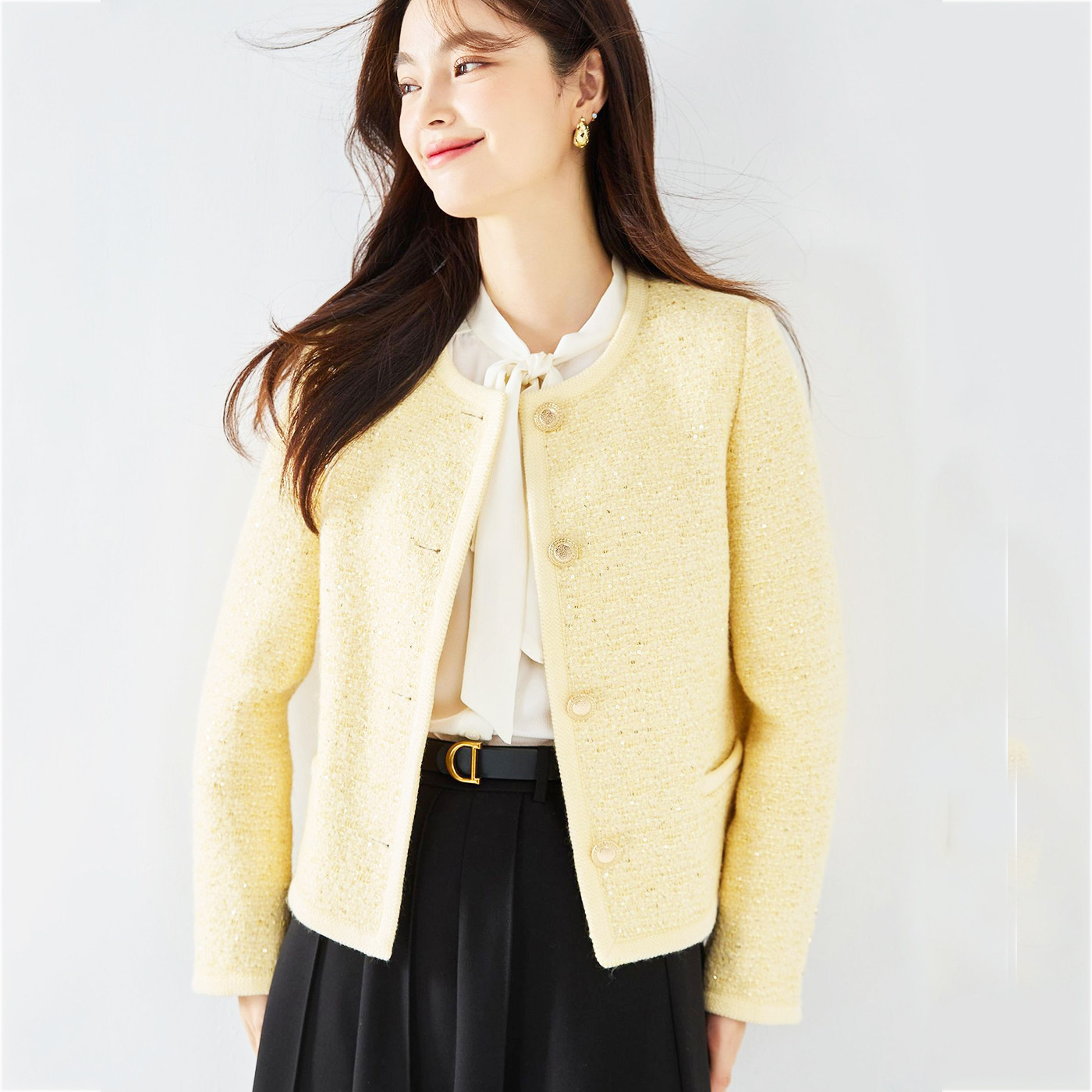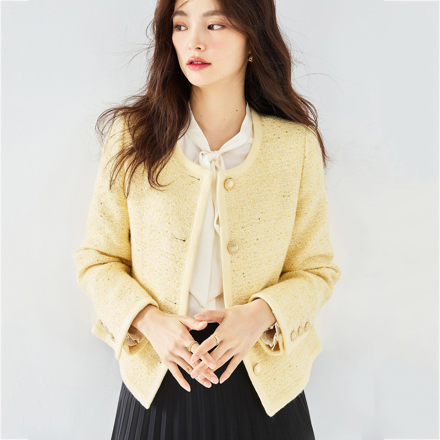 法式韩系设计气质通勤千金轻奢编织肌理羊毛经典小香箱型西装外套