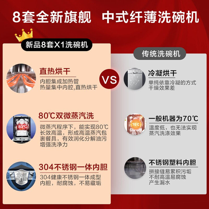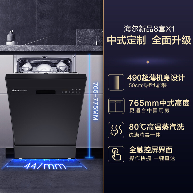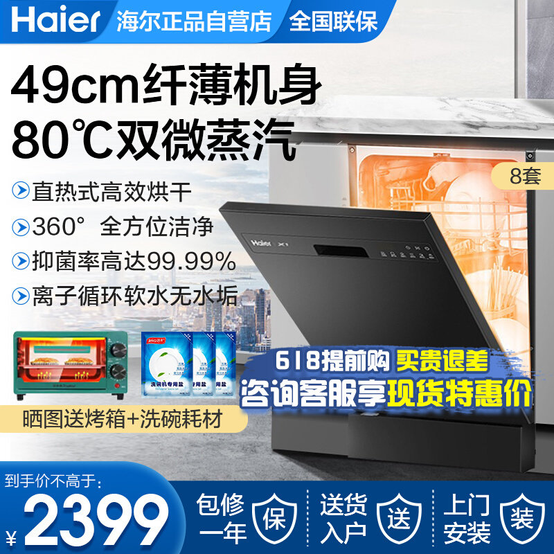 海尔洗碗机家用全自动独立嵌入式8套超薄消毒直热烘干独嵌触控X1