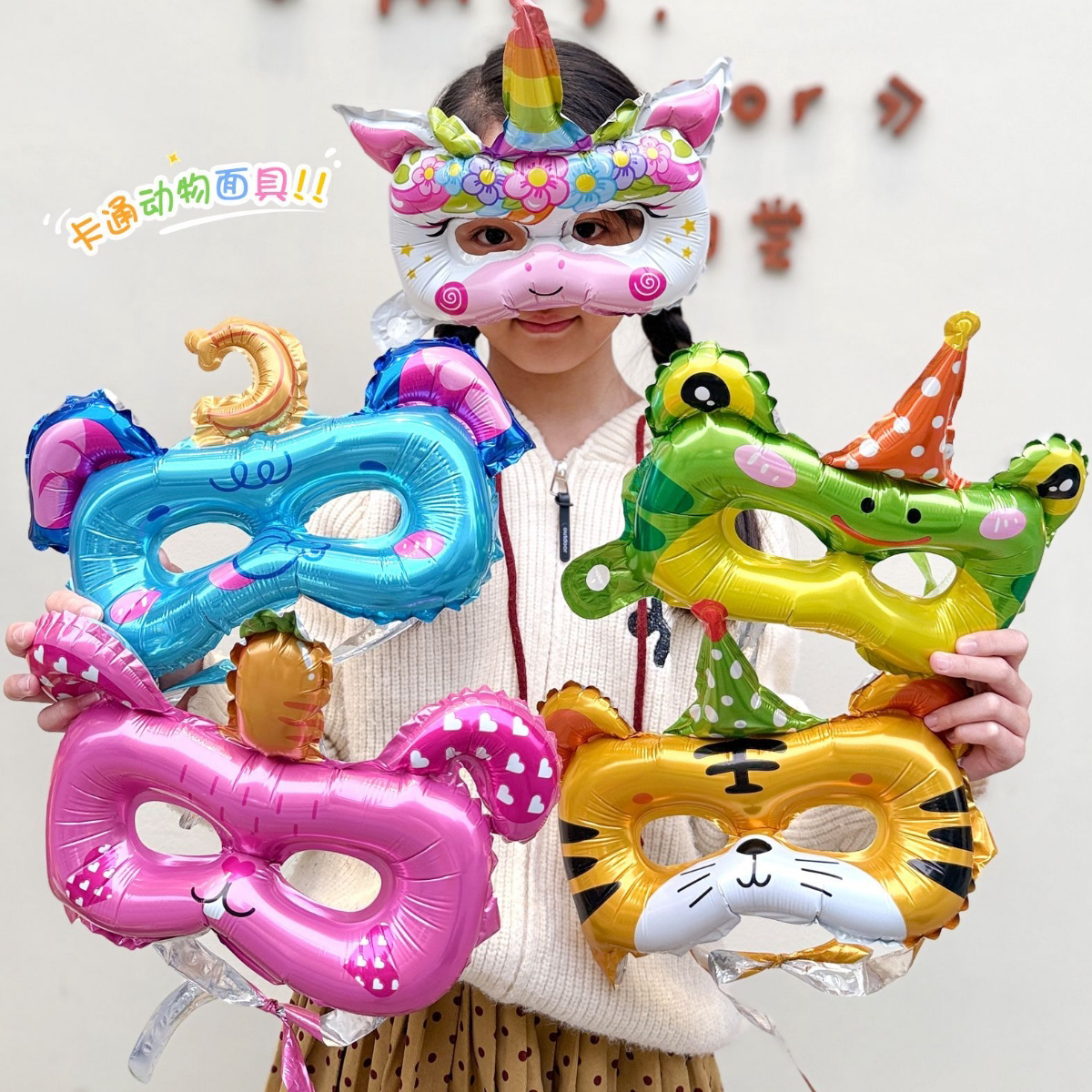 儿童装饰舞会生日派对布置用品动物面具铝膜气球店铺学校活动礼品