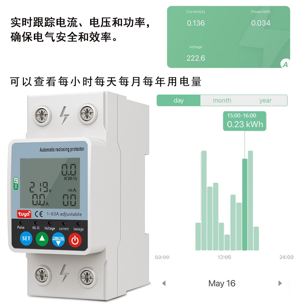 智能断路器低压电气涂鸦Wifi电表63A单相220v漏电保护断路器