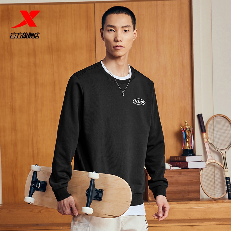 特步卫衣男女2025春季新款宽松休闲运动服套头衫情侣上衣长袖