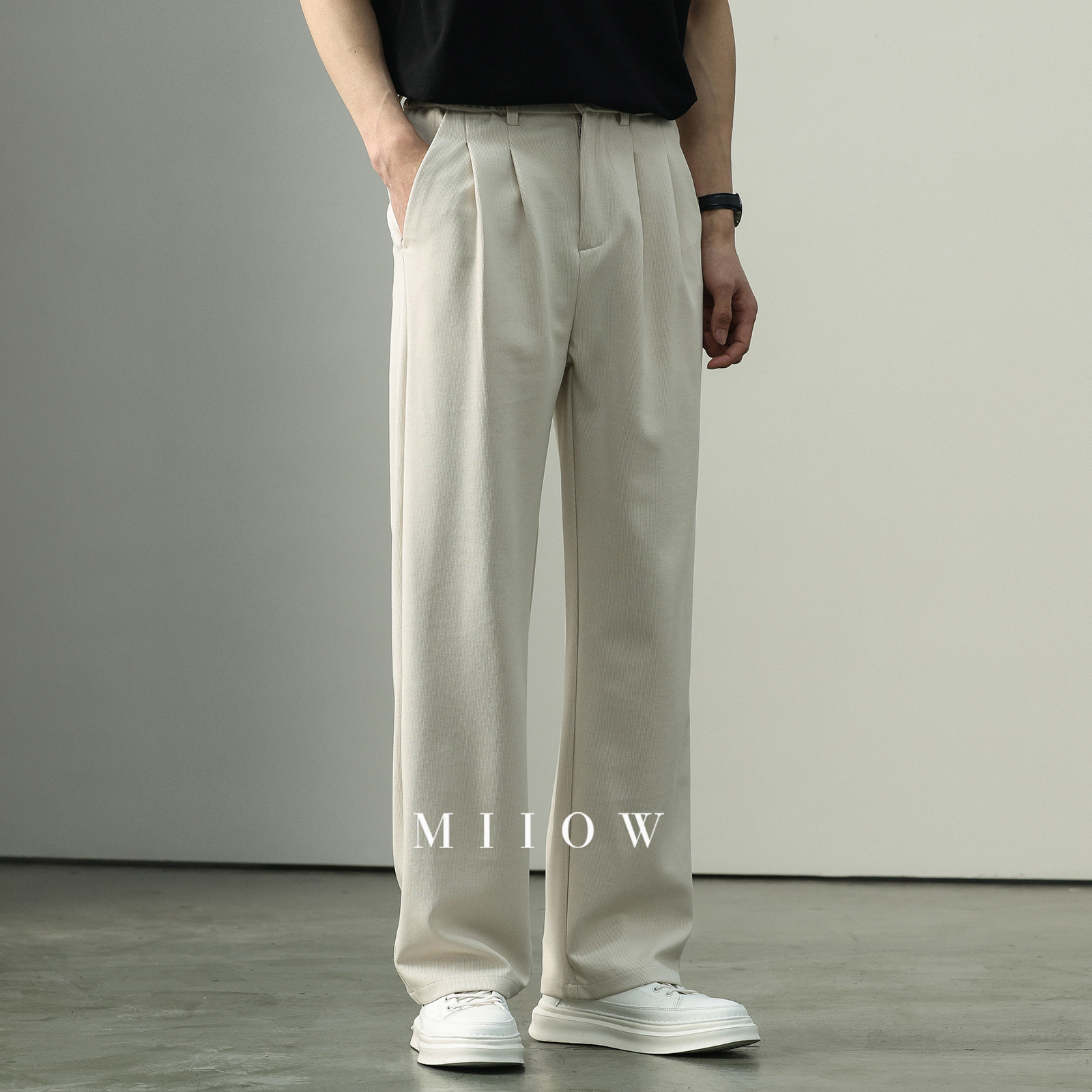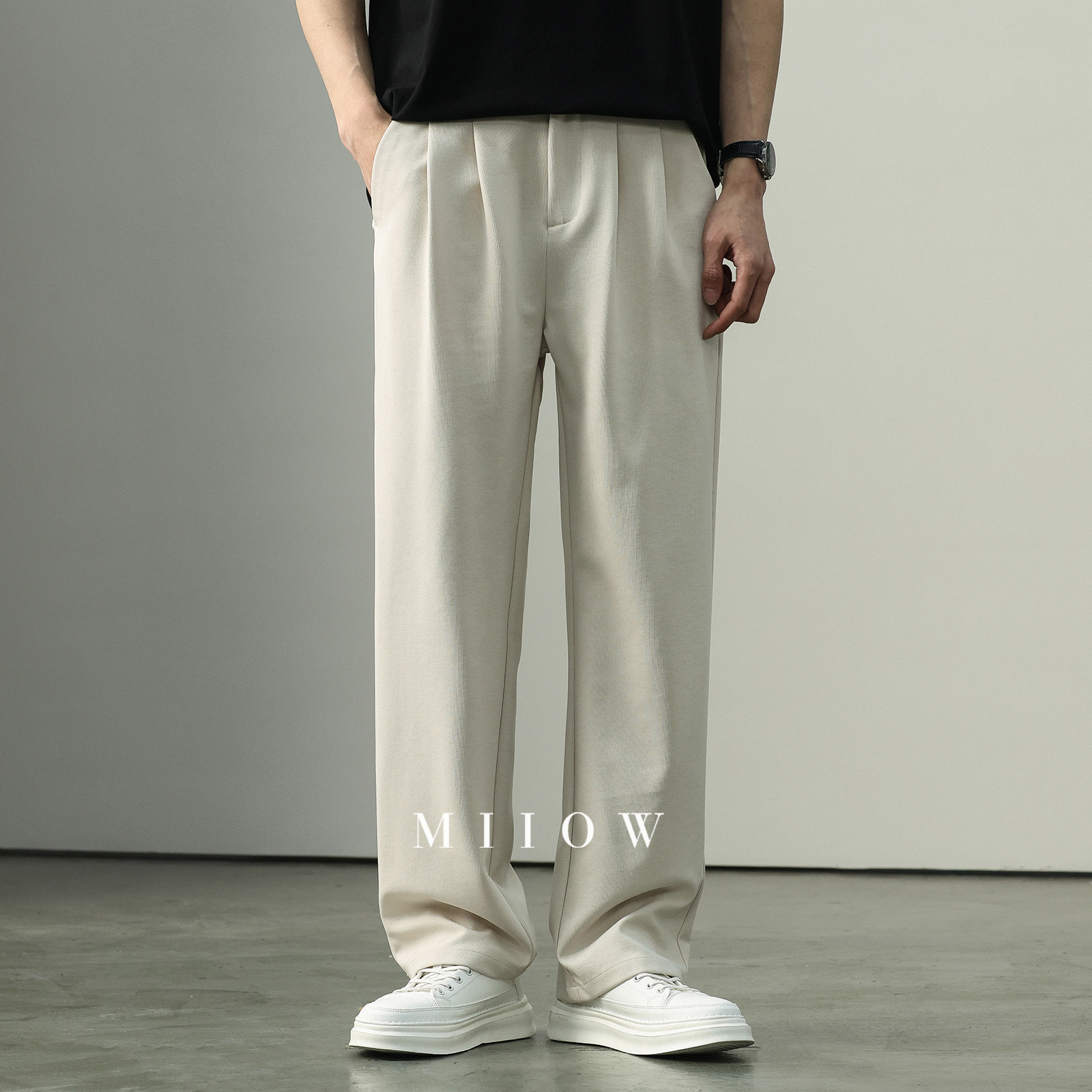 猫人高端针织垂坠感西裤男2025新款百搭轻熟风通勤商务直筒休闲裤