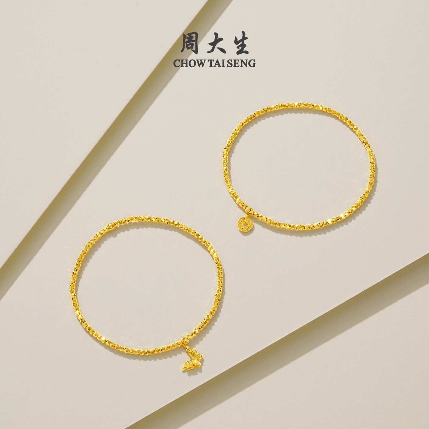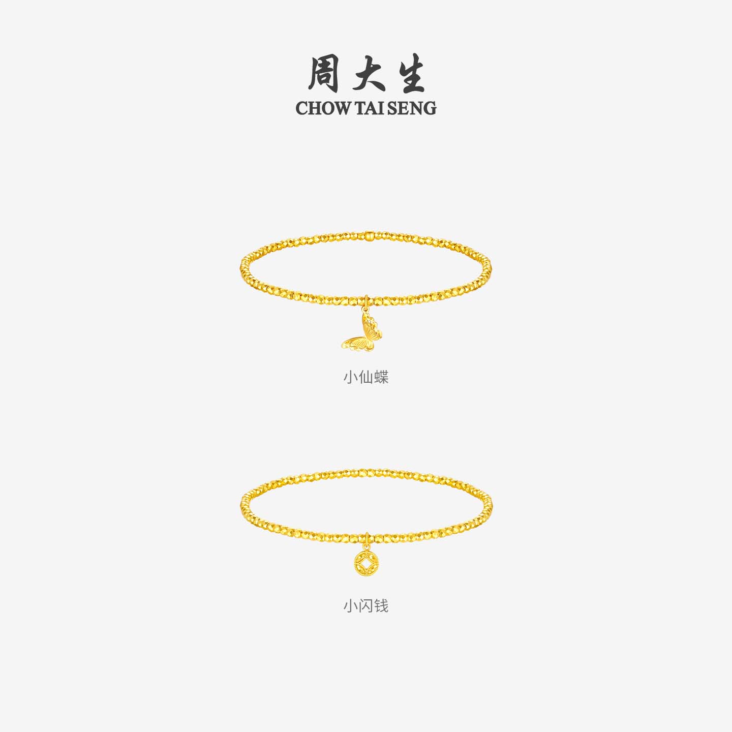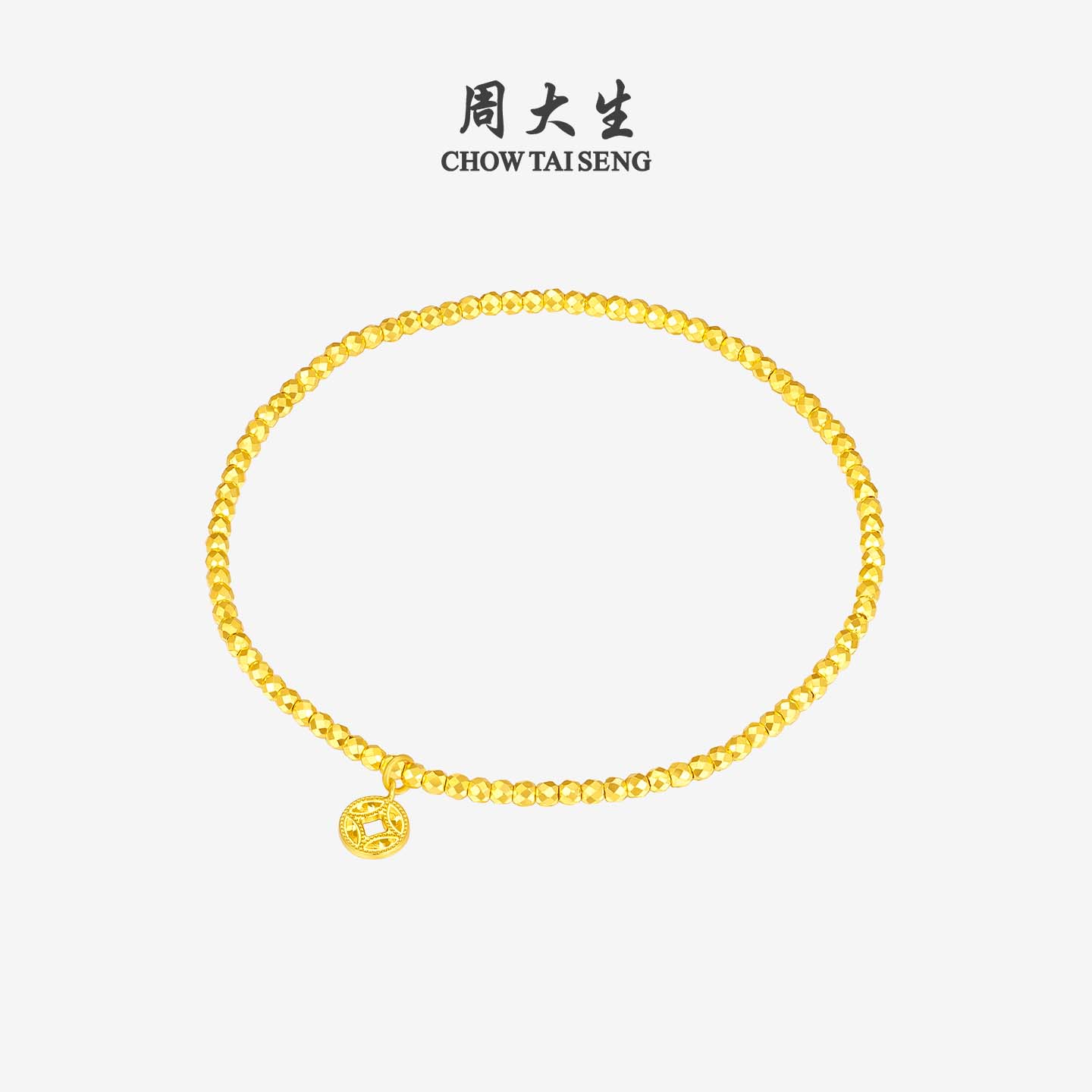 周大生黄金手链女爆闪碎碎冰铜钱金珠手串足金小闪蝶手饰生日礼物