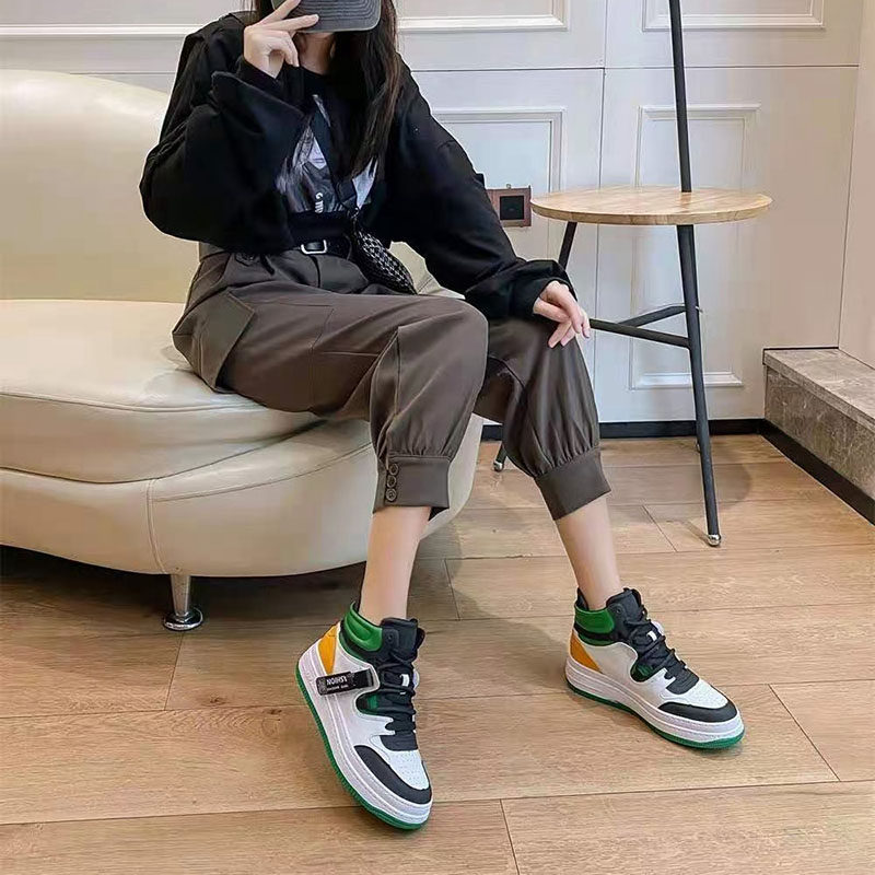 佰诗奴真皮运动休闲鞋高帮鞋女2023年新款春季潮鞋女 百搭女鞋
