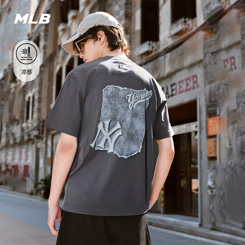MLB官方 男女情侣后背仿牛仔老花凉感百搭T恤短袖25夏季新款TSM10