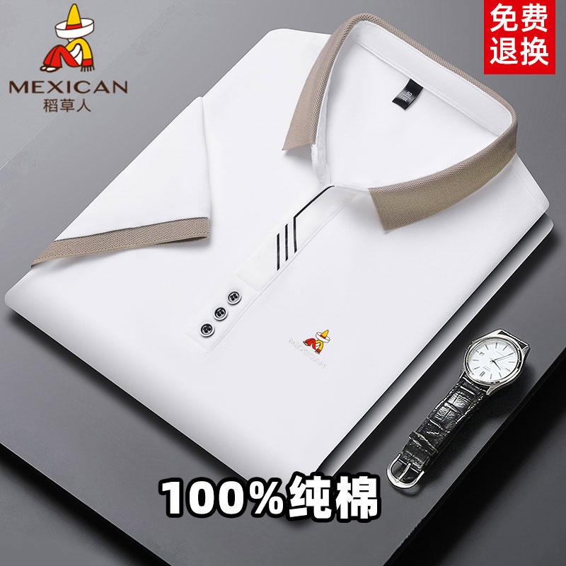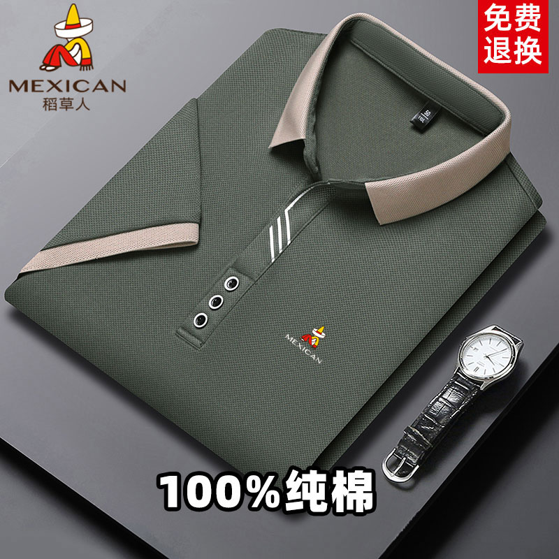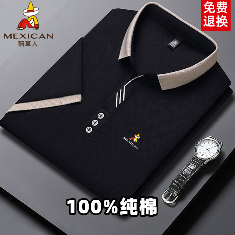 稻草人100%纯棉男士夏季POLO衫休闲百搭宽松翻领短袖t恤刺绣上衣