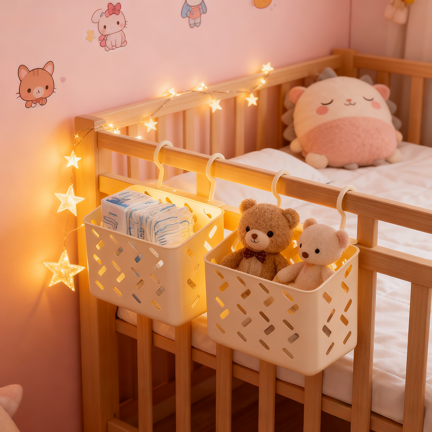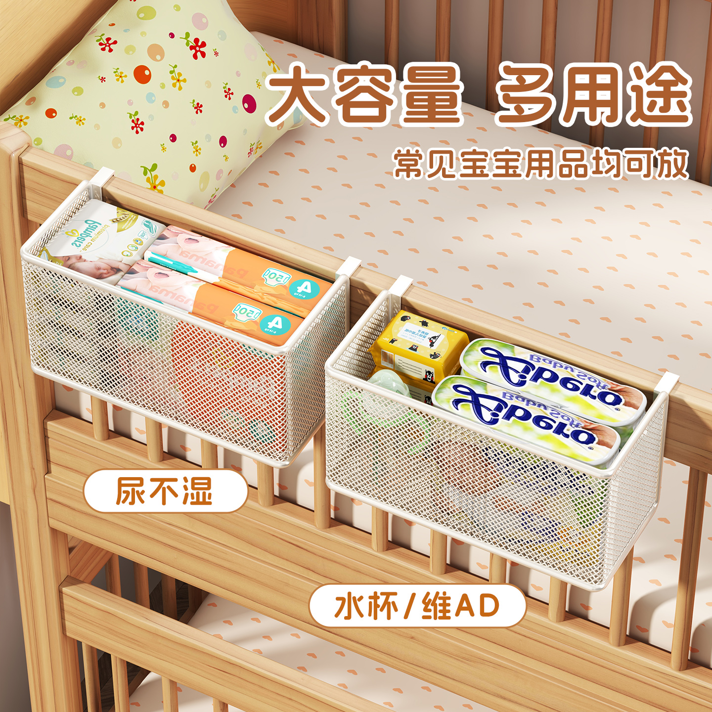 婴儿床纸尿裤收纳挂篮奶瓶置物筐尿不湿收纳盒儿童宝宝床围栏整理
