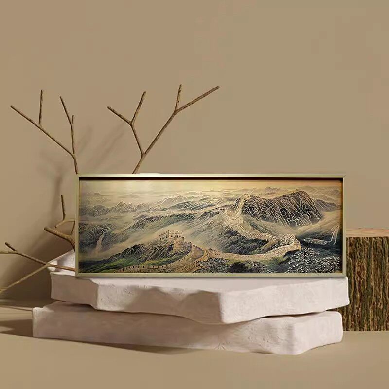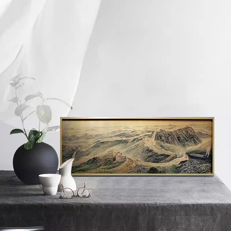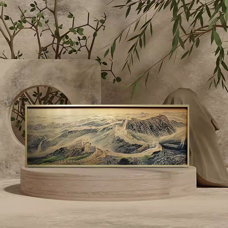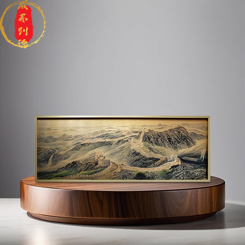 威弗列德桌面办公桌装饰品高级感铜版画《万里长城》新中式摆件