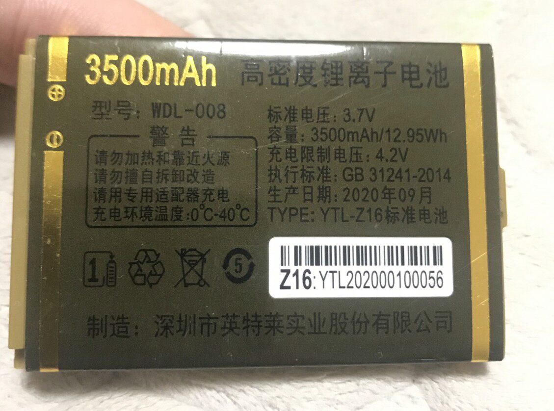 WDL-008万迪宝V588全网通4G手机V166电池/YTL-Z16电板(3500mAh)
