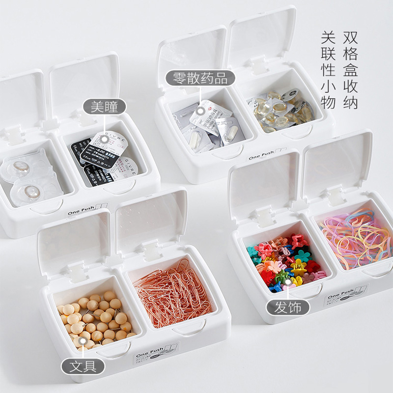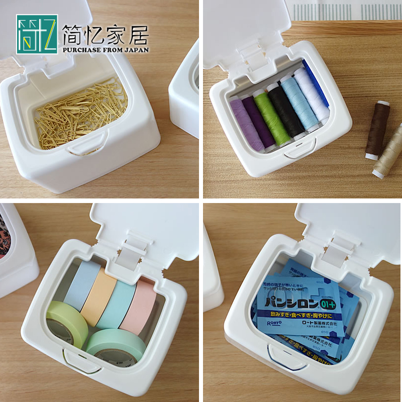 日本进口桌面按压式收纳盒夹子杂物整理带盖化妆棉牙签棉签储物盒