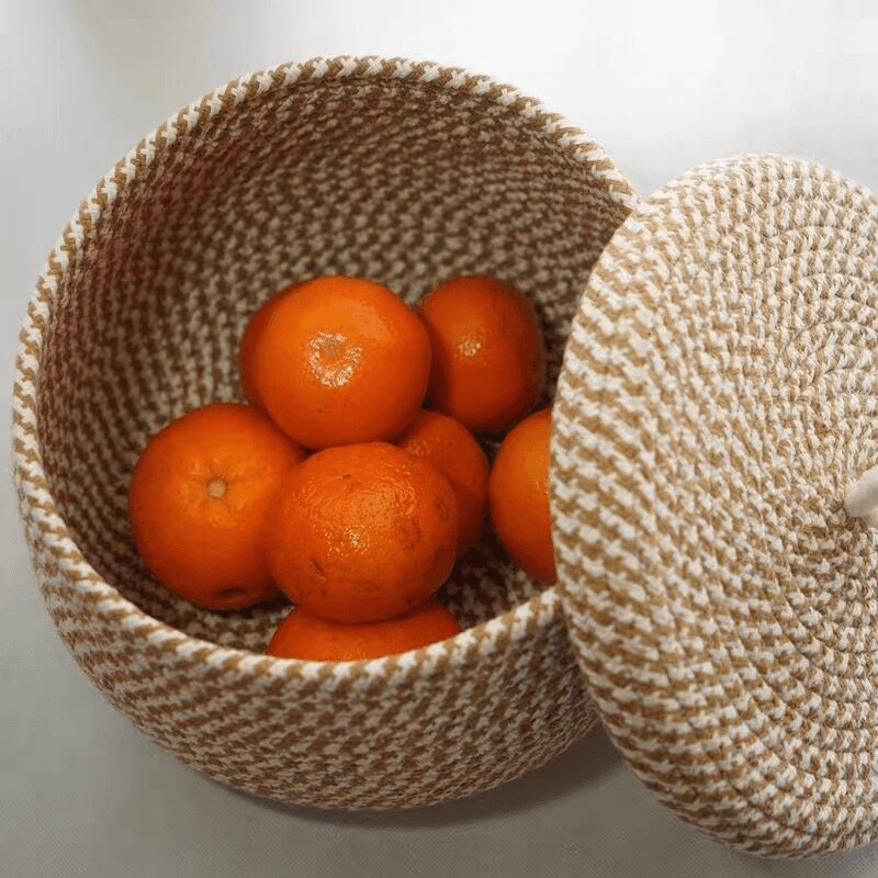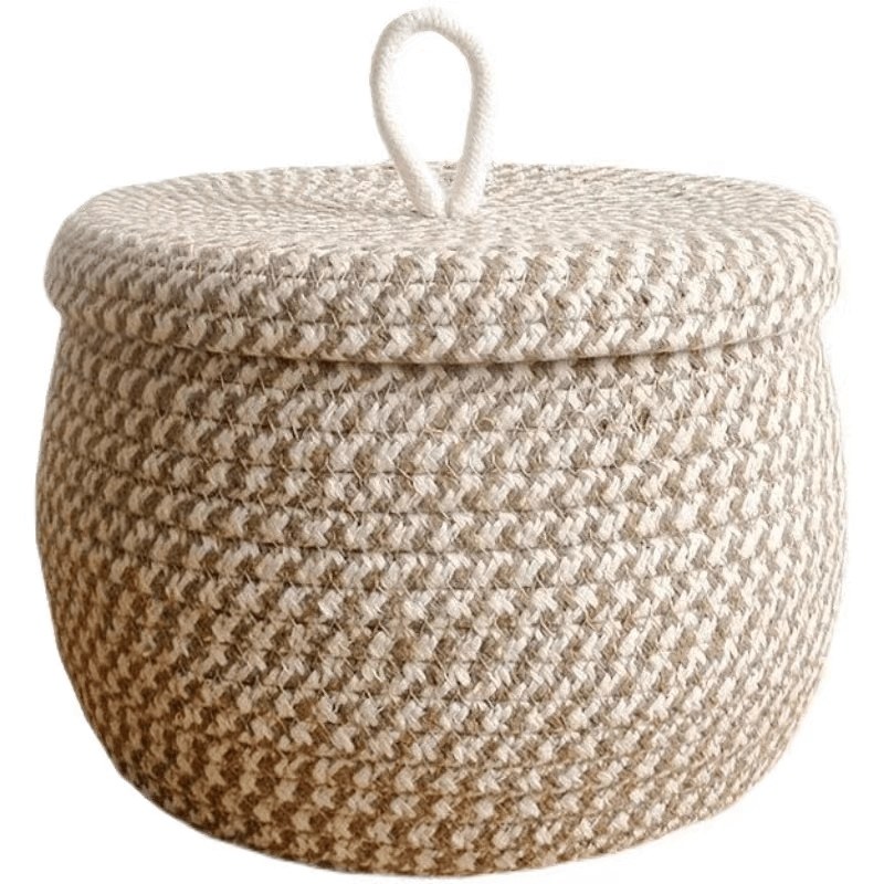 桌面收纳盒化妆收纳零食整理手工编织鸡蛋收纳筐带盖编织篮子LCB