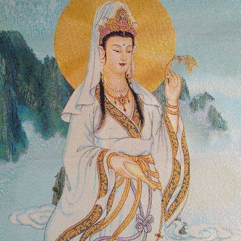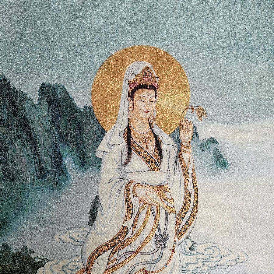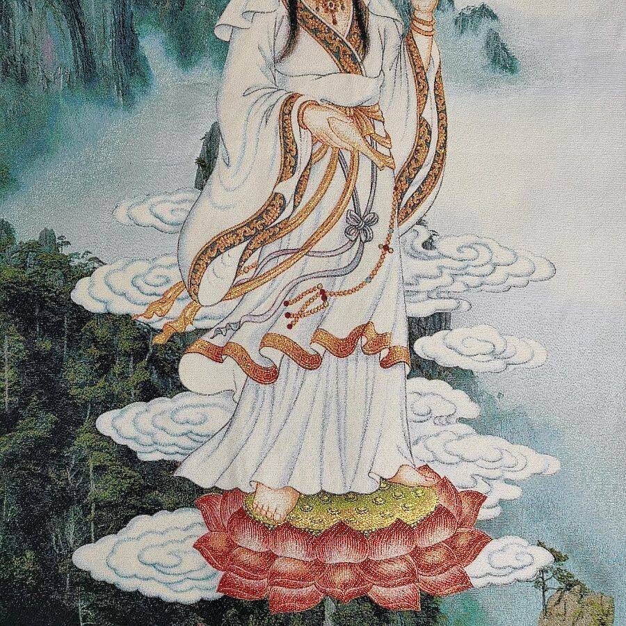山水观音织锦画现代装饰画90*60CM观世音菩萨刺绣国画家居饰品