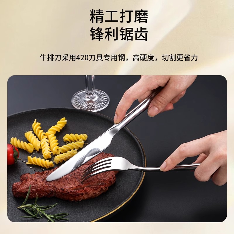 刀叉304不锈钢家用西餐勺子套装德国加厚高档切牛排刀三件套轻奢