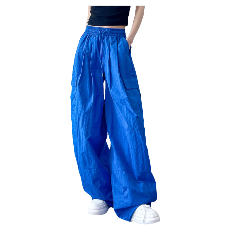 速干工装裤女夏季薄款蓝色宽松胖mm防晒bf慵懒风冰丝运动阔腿裤子