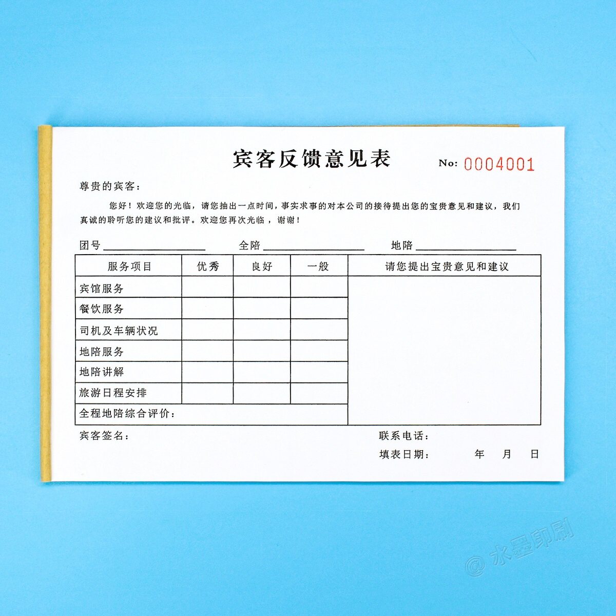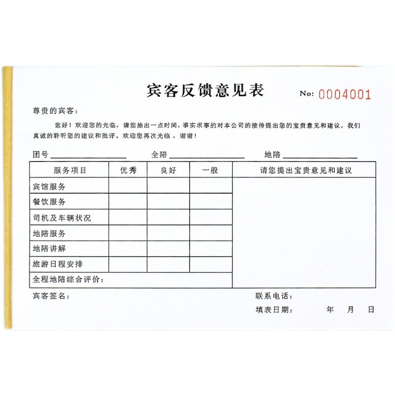旅行社服务游客满意度调查表二联酒店餐饮服务宾客反馈建议意见表