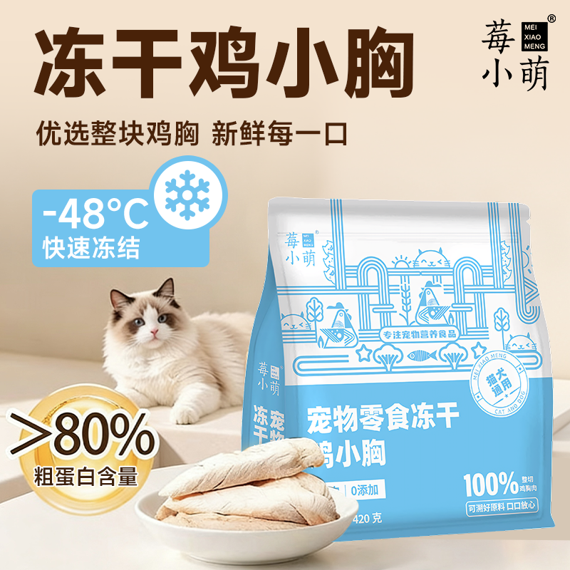 莓小萌冻干鸡小胸0添加高蛋白冻干鸡胸肉猫狗宠物零食训练奖励
