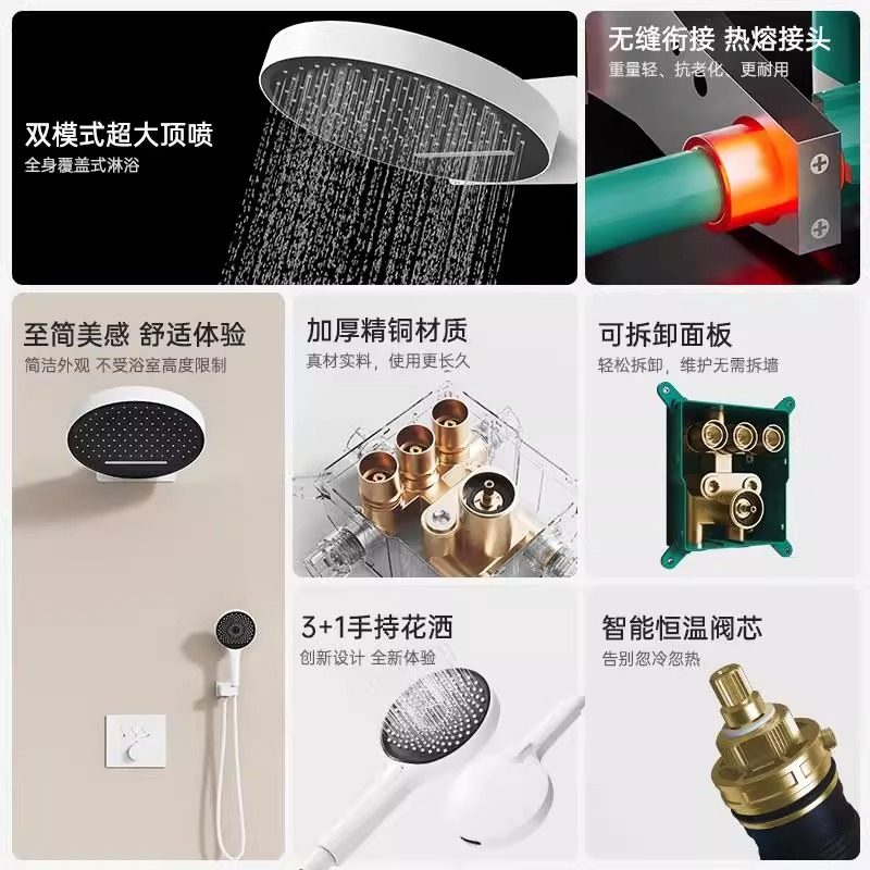 汉斯hansiminghe镜雨入墙式暗装隐藏嵌入式恒温淋浴增压花洒套装