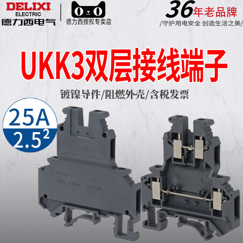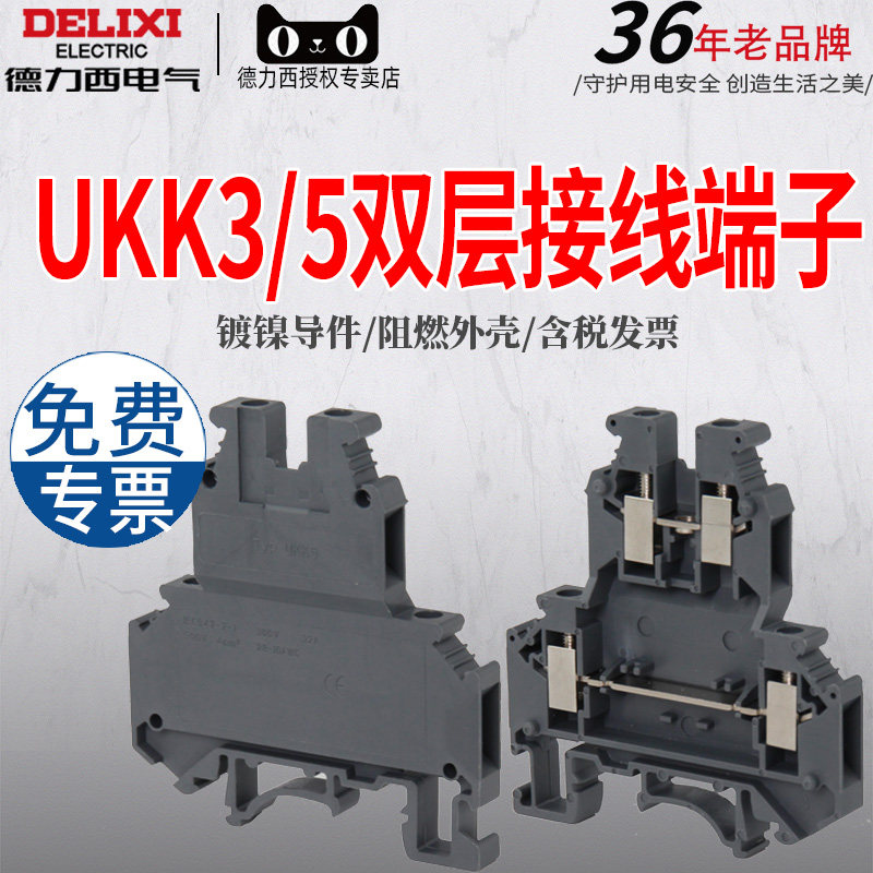 德力西UKK3/5双层通接线端子排 UK双进双出组合式导轨端子2.5-4mm