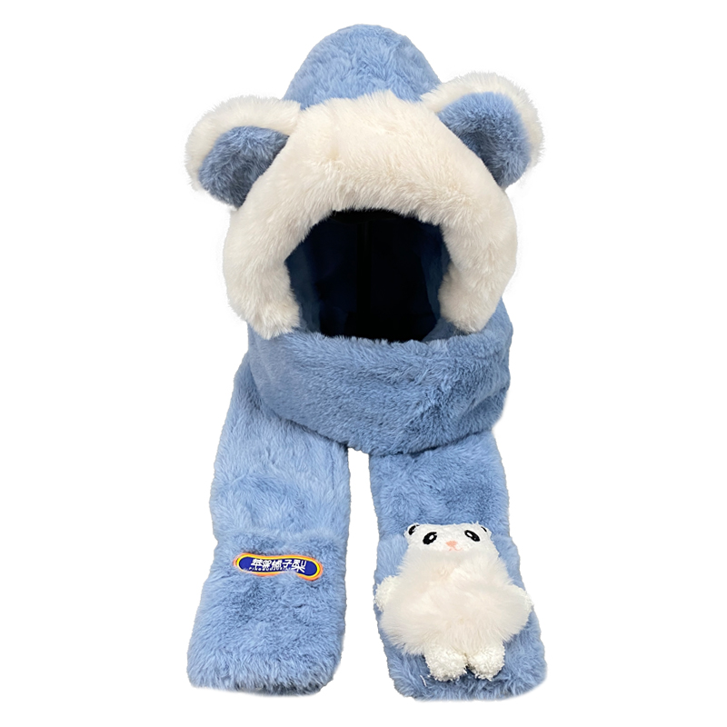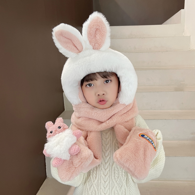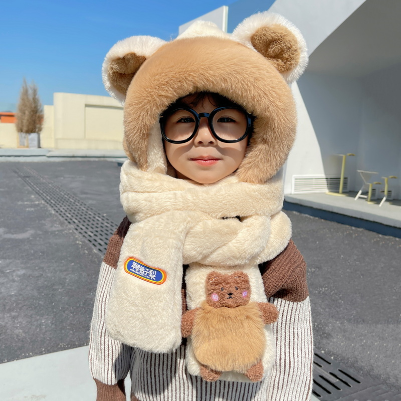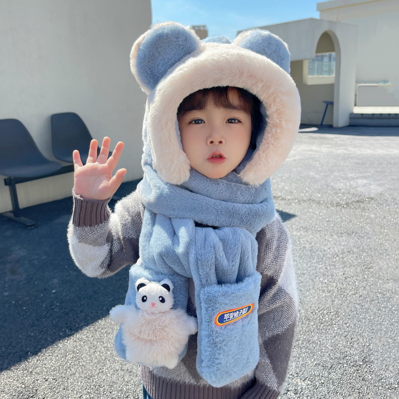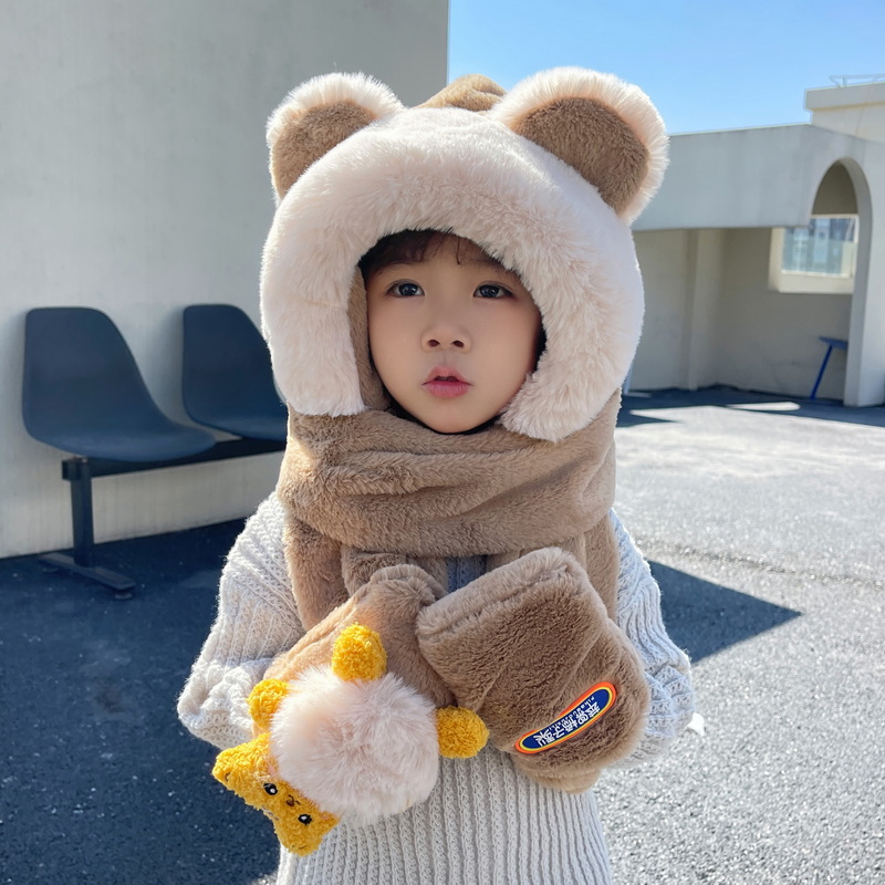 儿童帽子围巾手套一体帽男童冬季保暖宝宝防风男孩女童围脖毛绒帽