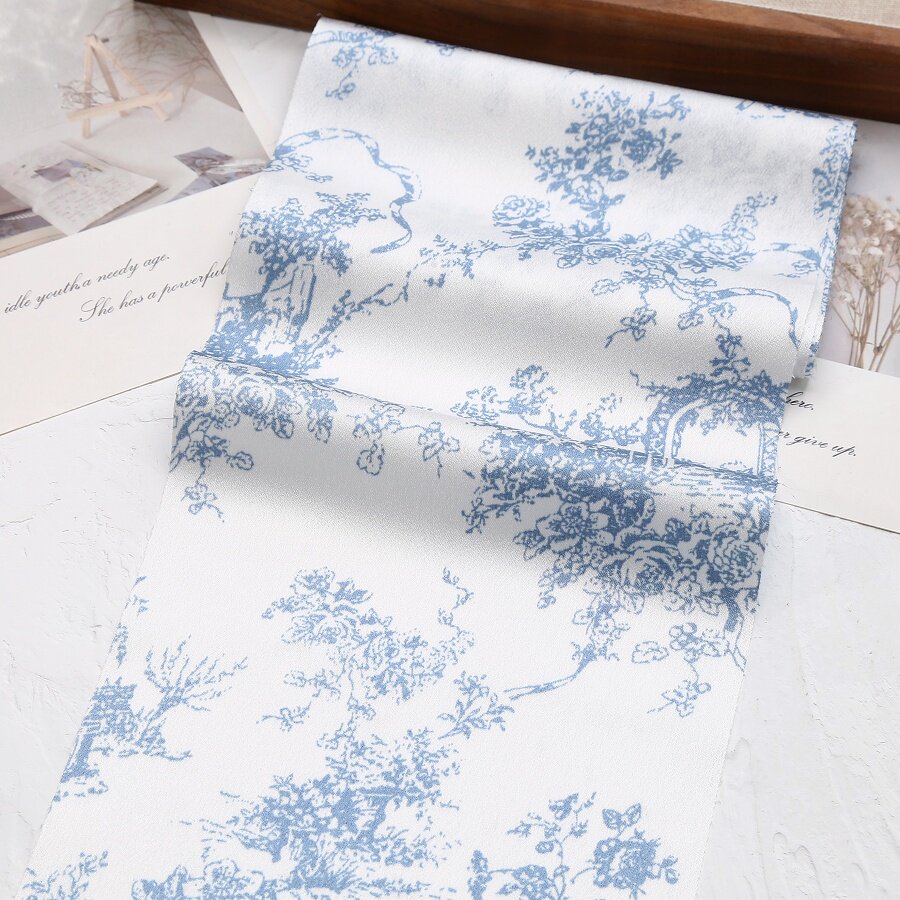 复古花纹青花瓷缎面大肠发圈diy材料布料布带手工发饰头饰辅料