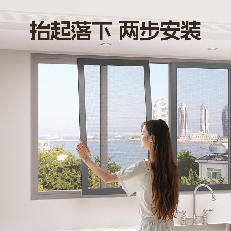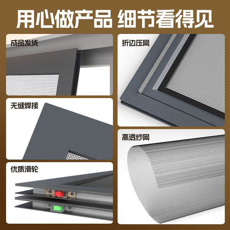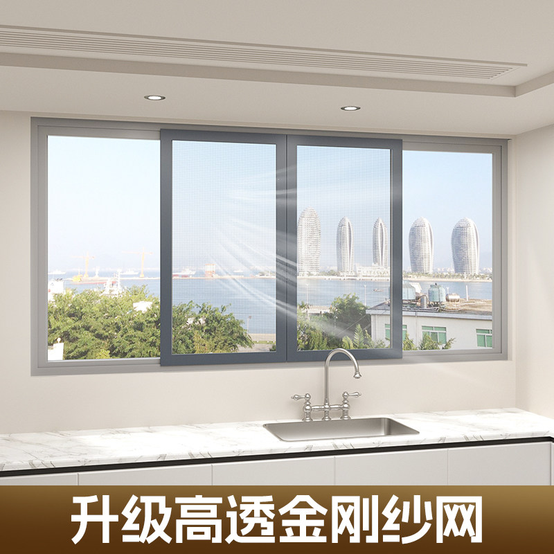 无缝焊接纱窗网自装推拉式防蚊防护定制金刚网推拉式平移片纱