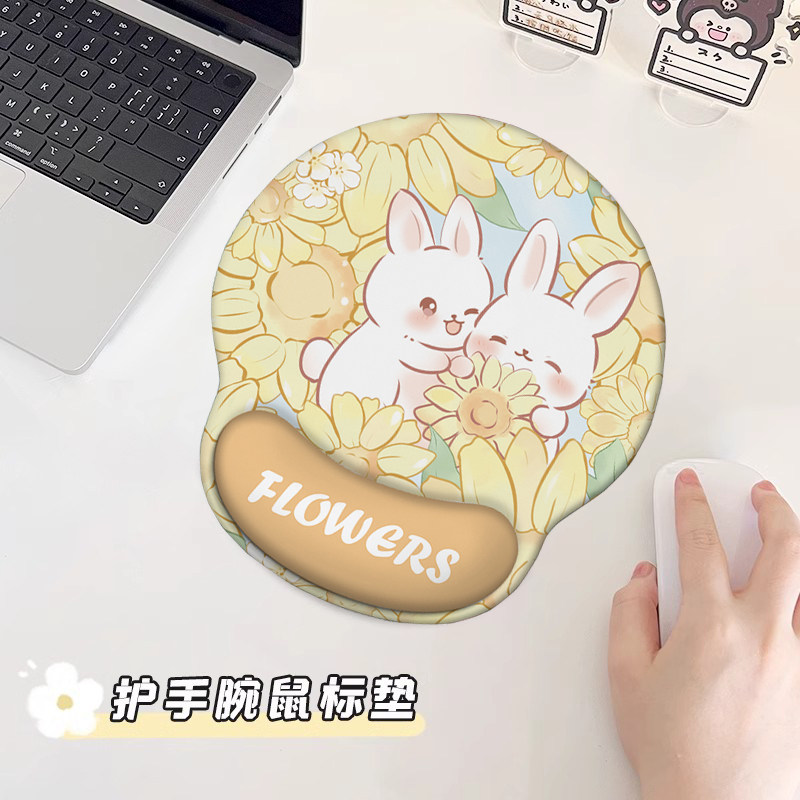 可爱小白兔鼠标垫加厚3D护腕垫记忆棉电脑键盘手托办公滑鼠垫女生