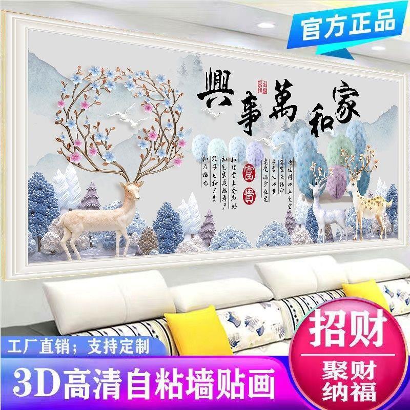 自粘软装壁画防水客厅墙贴新中式家居饰品沙发背景墙装饰 自粘软