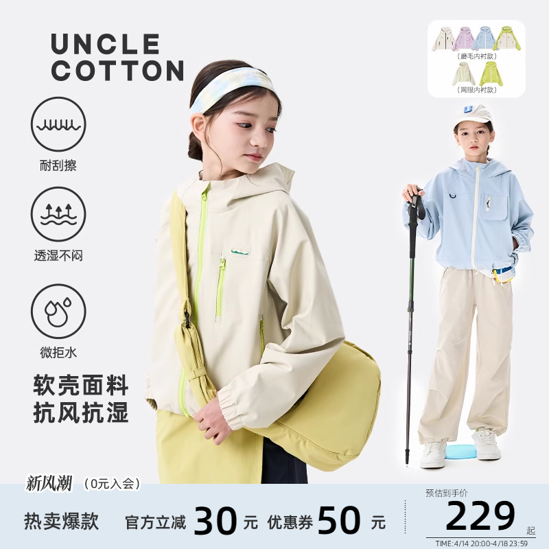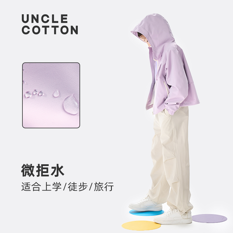 棉叔叔男女儿童户外拒水透湿上衣小个子宽松连帽夹克中大童外套