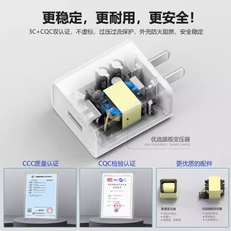 充电头5V3A充电器18W散热器充电宝小风扇音响5V3000mA毫安电源适配器3C认证正品9伏2安USB插头安卓通用快充头