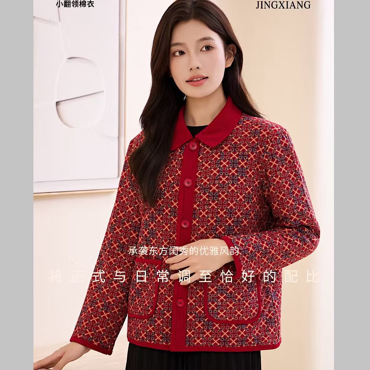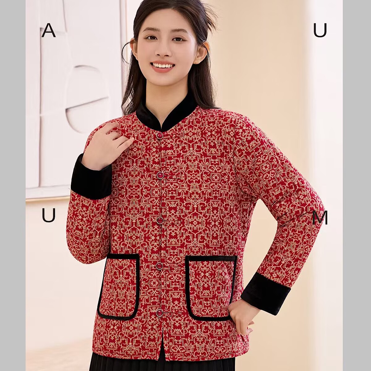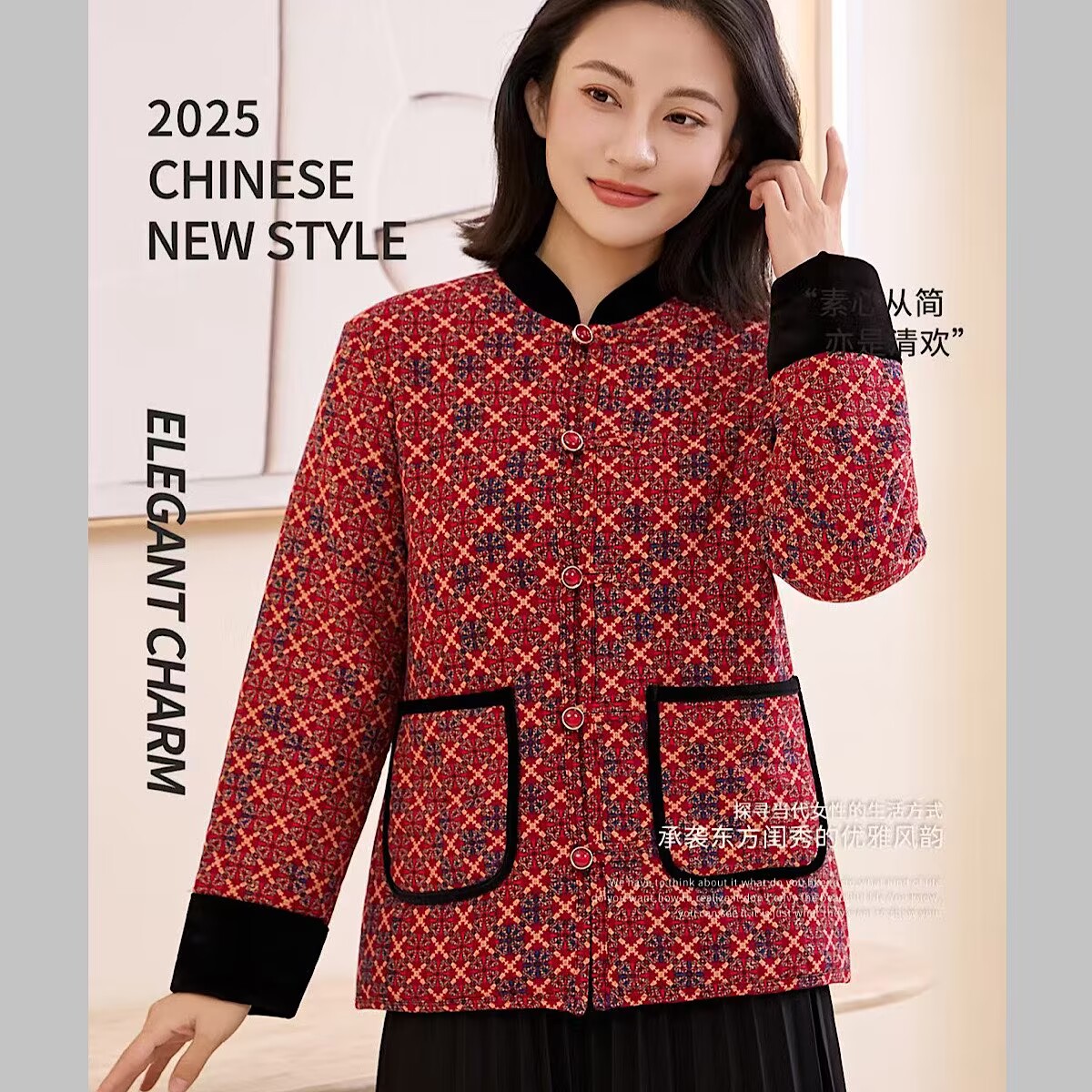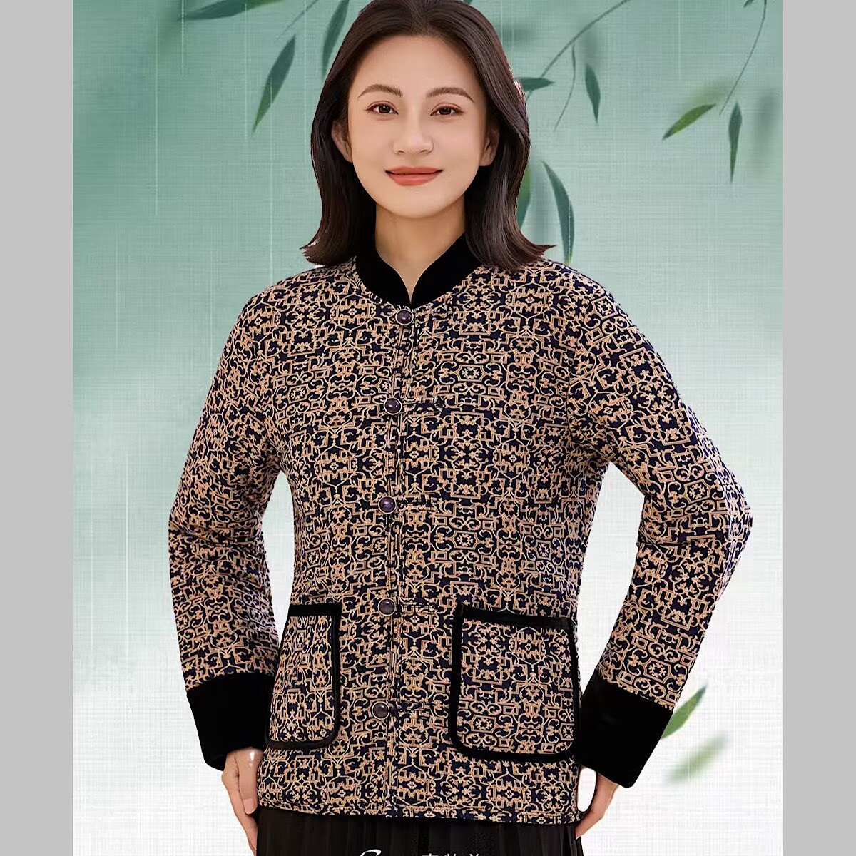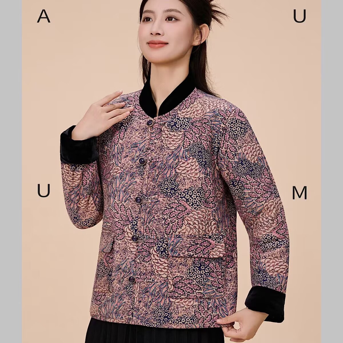 森牧羊毛驼绒花棉袄中老年女士保暖上衣老太太加大码开衫外套棉服