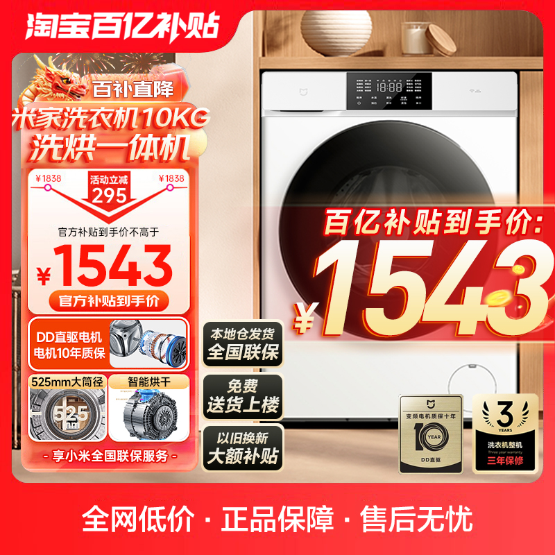 小米米家洗衣机洗烘一体10kg全自动直驱变频超薄全嵌入家用大容量