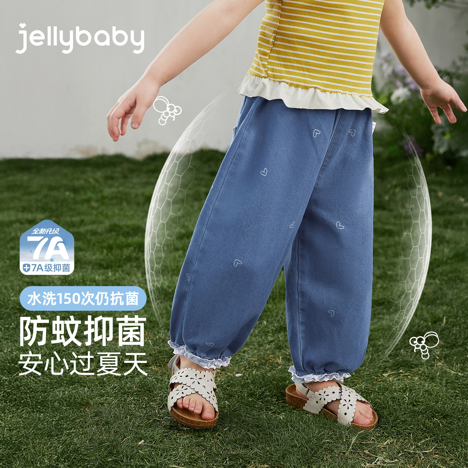 jellybaby耐磨女童裤子夏季儿童牛仔裤宽松灯笼裤宝宝夏装休闲裤