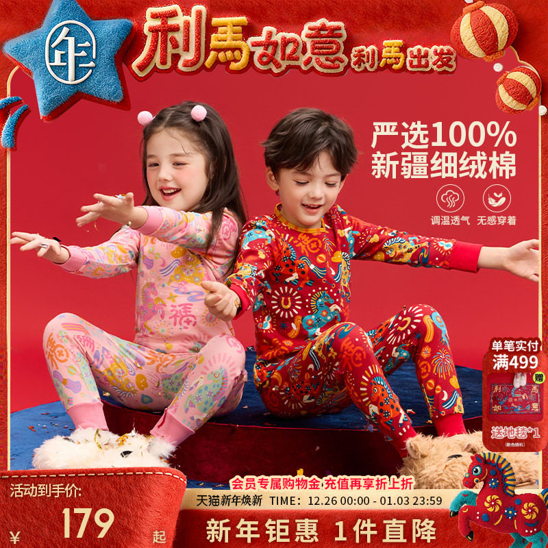 年衣童装儿童家居服套装冬季新款男女童内衣秋衣秋裤睡衣长裤纯棉