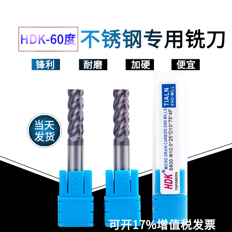 不锈钢专用铣刀 钨钢涂层铣刀 合金4刃平底刀 HDK60度加硬铣刀
