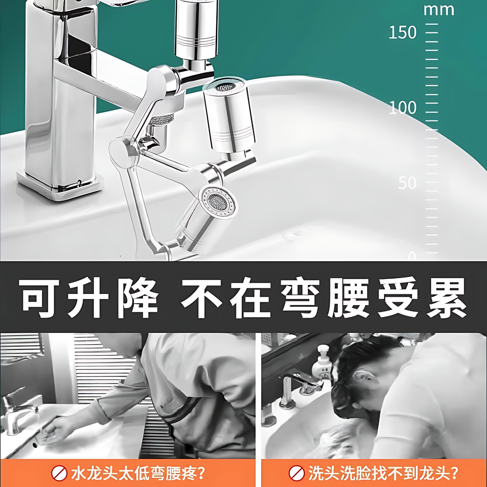新款机械臂万向水龙头延伸器防溅出水嘴可旋转浴室洗脸盆起泡神器