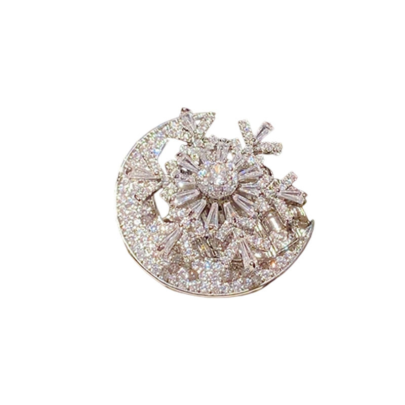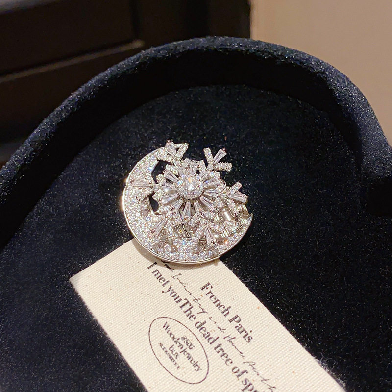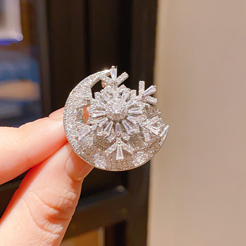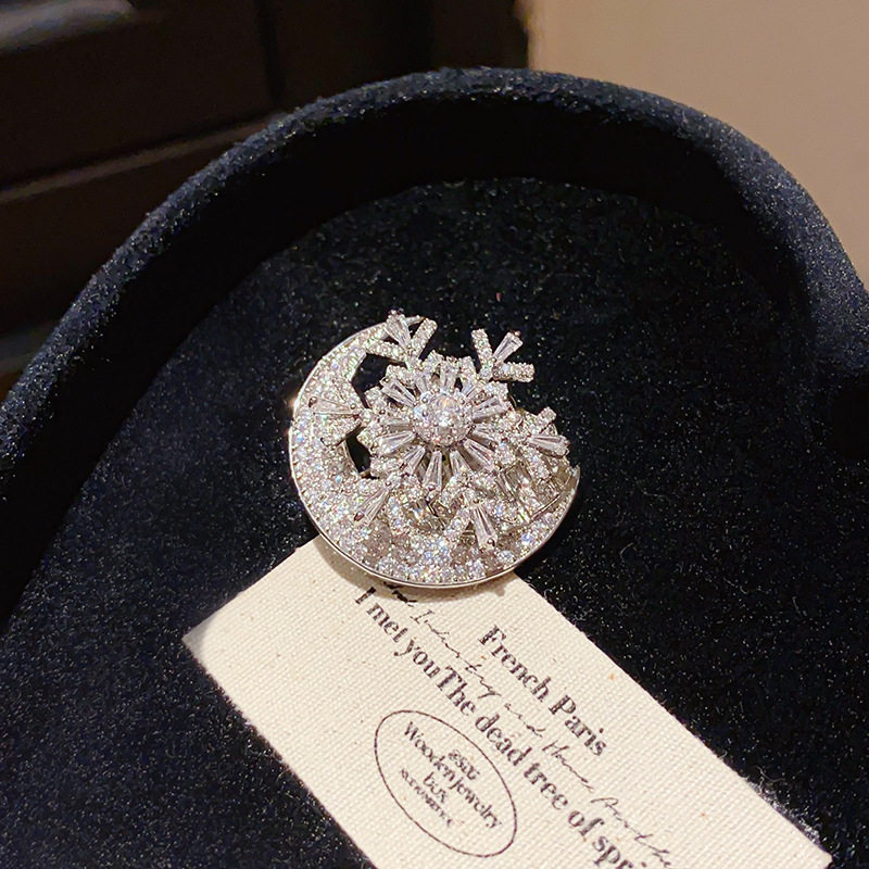 法式女秋冬圣诞锆石圆形雪花月亮胸针精致优雅气质小众轻奢配饰
