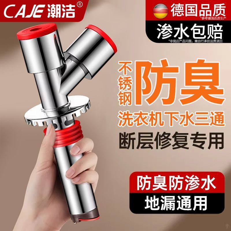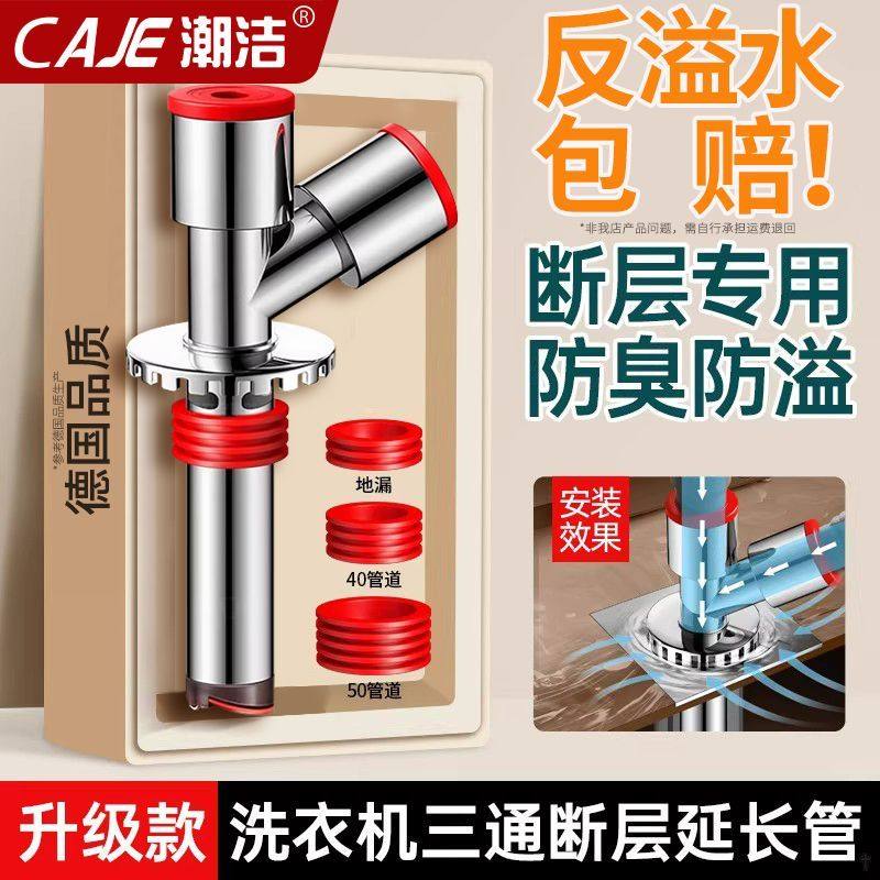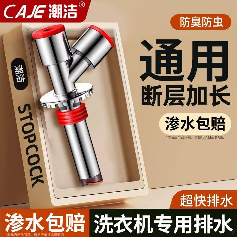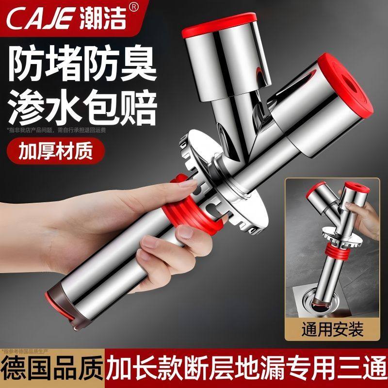 潮洁不锈钢下水器洗衣机地漏下水三通接头断层地漏专用三通加长款