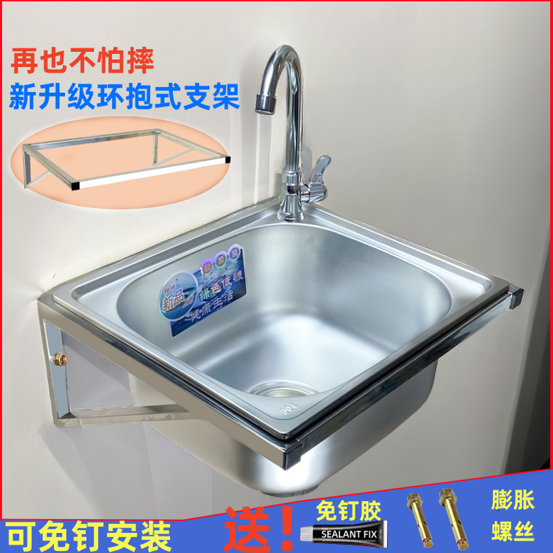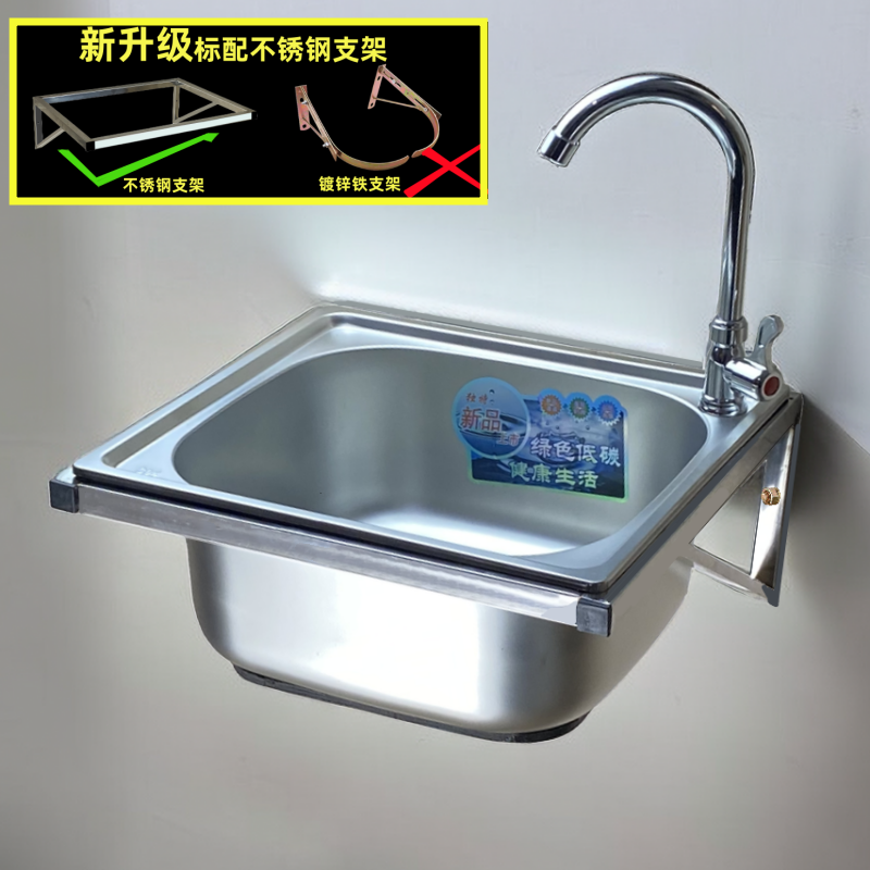 304不锈钢挂墙式水槽支架卫生间厨房挂壁洗手盆洗菜池洗脸单双盆