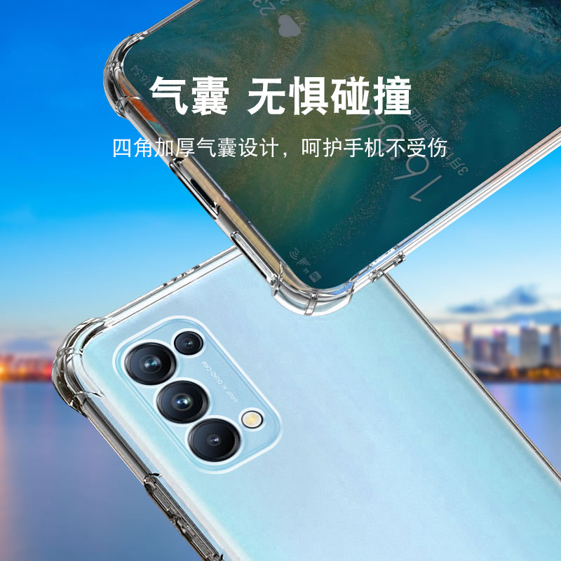 度泉气囊防摔适用oppo Reno5PRO硅胶手机reno5k保护套f全包z超薄+软青春版透明四角加厚镜头男女新款个性简约