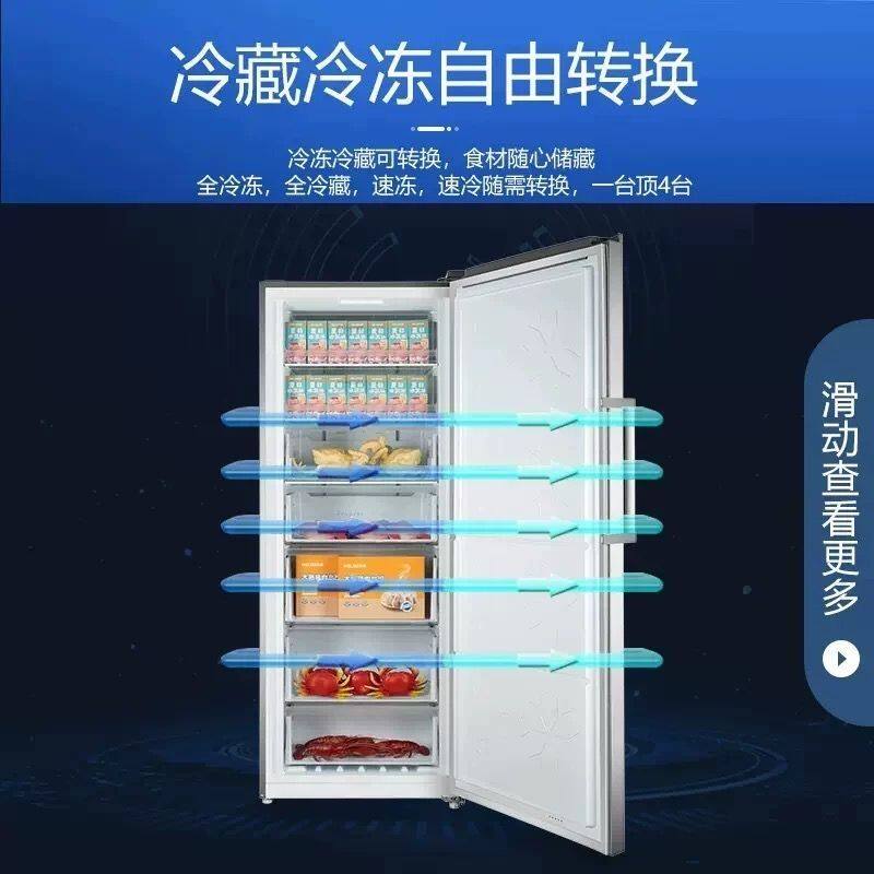 美菱立式冰柜家用380升全冷冻柜一级变频风冷大容量抽屉式冷柜398