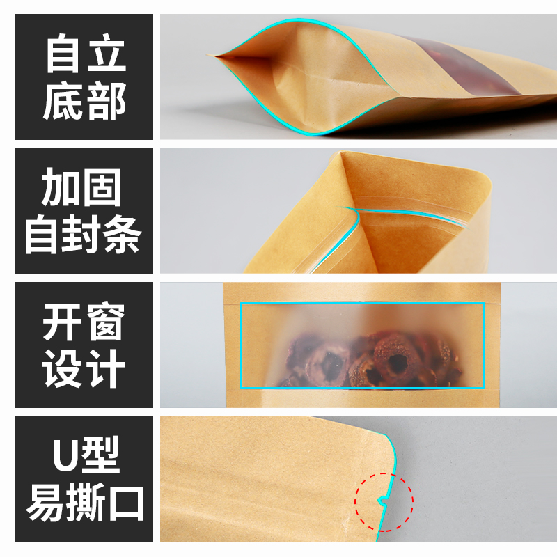 牛皮纸袋自封袋食品茶叶包装袋子零食加厚密封袋牛肉干封口袋定制