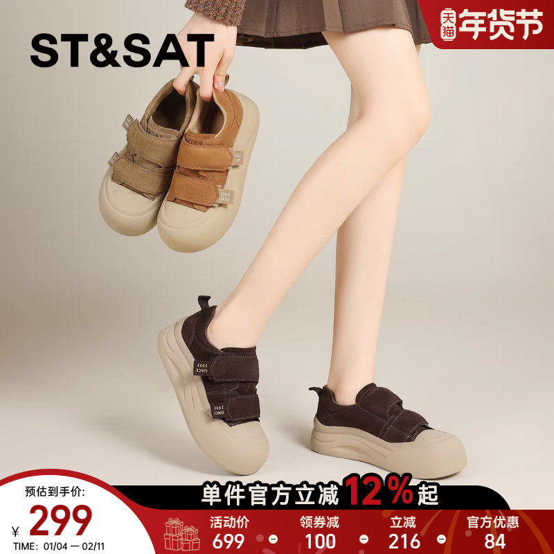 星期六复古厚底加绒休闲板鞋女鞋2025秋冬新款加厚保暖棉鞋面包鞋