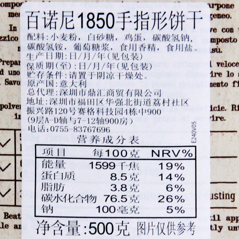 百诺尼1850手指形饼干500g/60根意大利进口提拉米苏家用烘焙原料