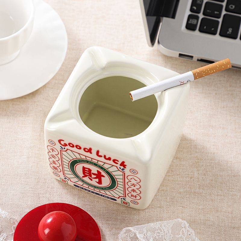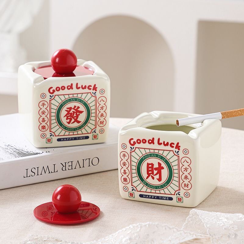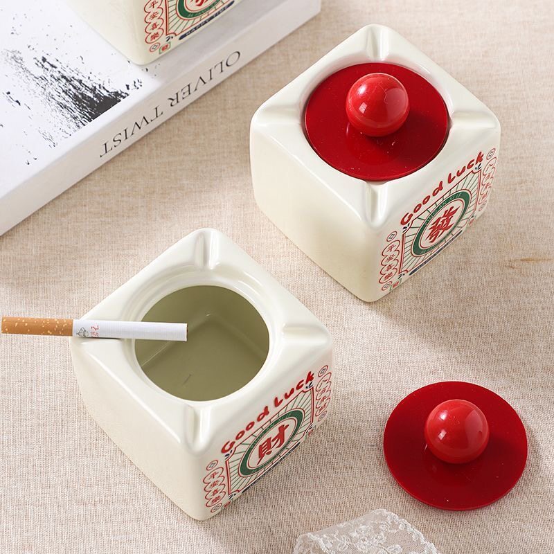 高颜值可爱烟灰缸家用烟缸装饰个性客厅发财创意摆件带盖高级防飞