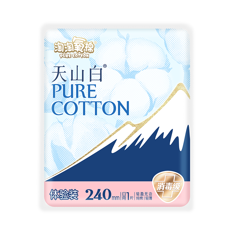 淘淘氧棉天山白消毒级卫生巾日用240mm体验装纯棉亲肤