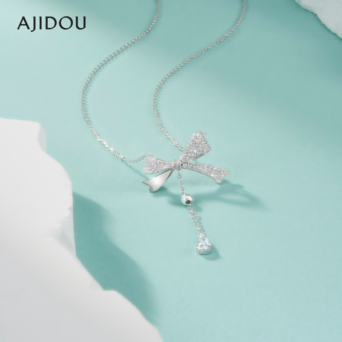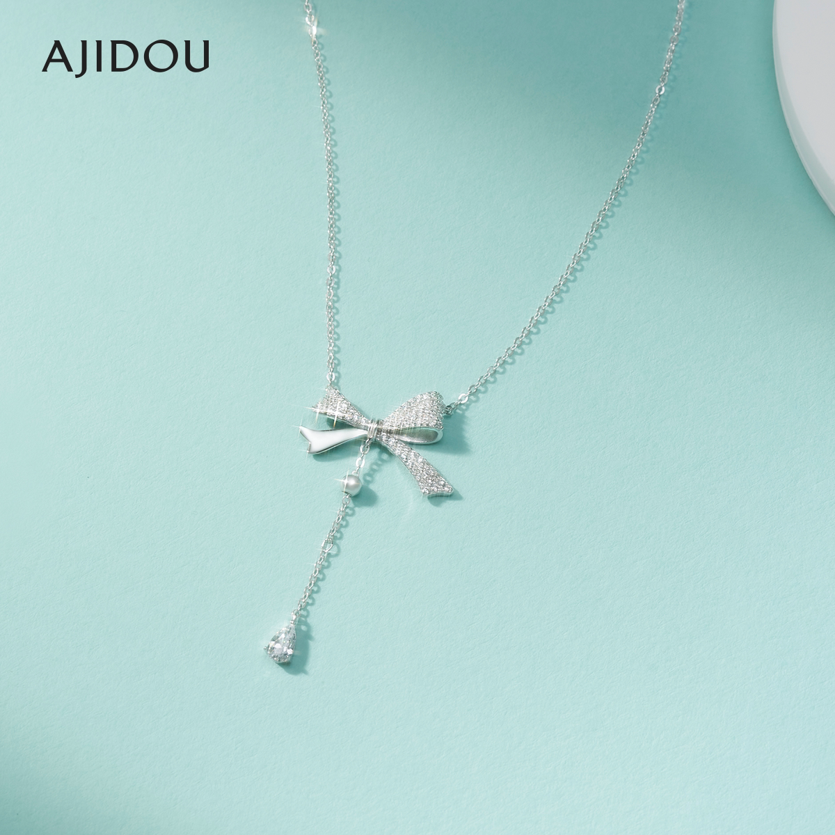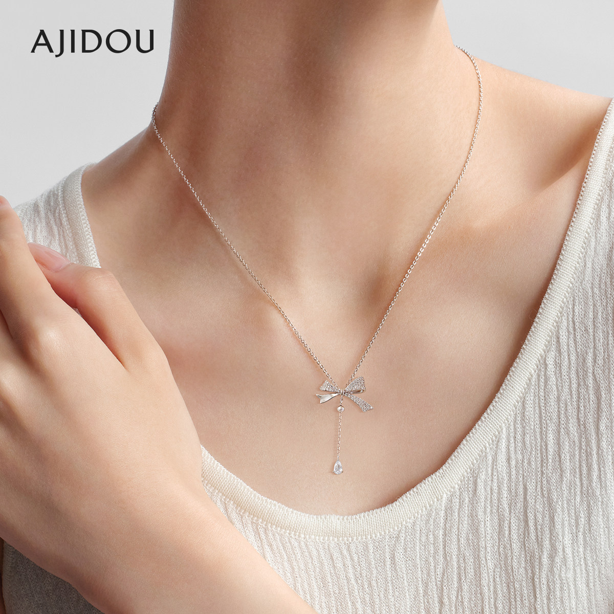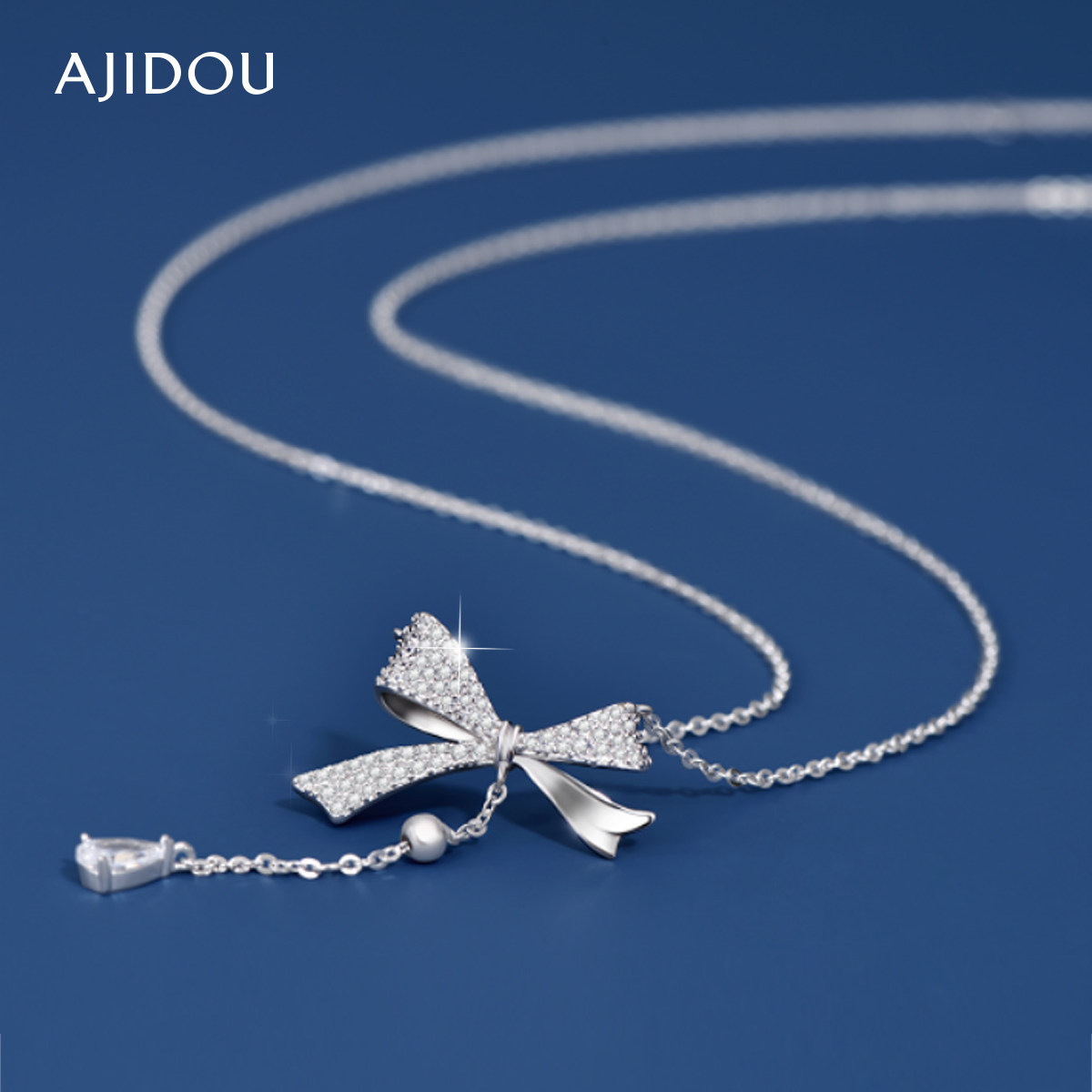 AJIDOU阿吉豆项链蝴蝶结925银女爆款推荐时尚纯银饰品首饰锁骨链